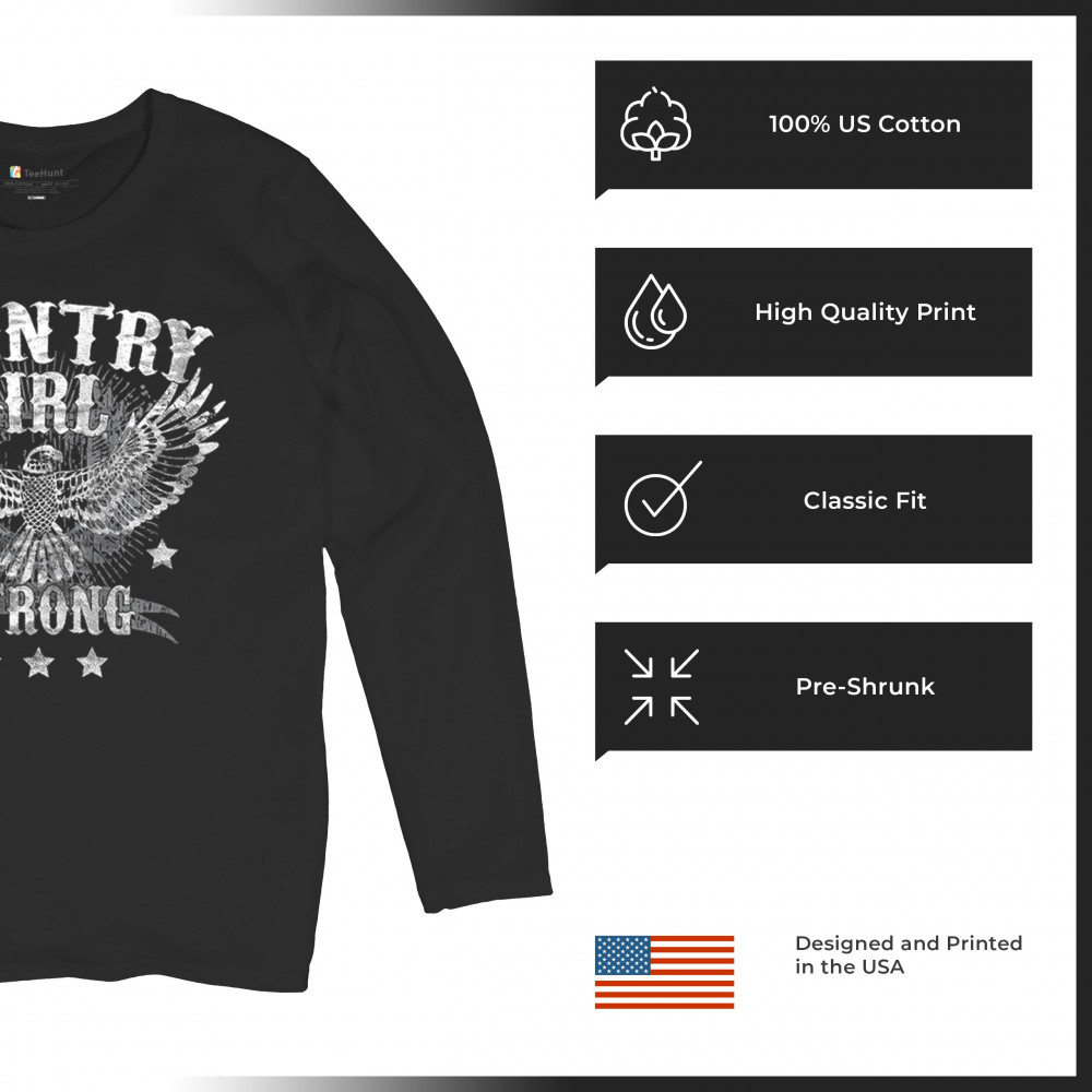 Show off your rural pride with this bold “Country Girl Strong†design featuring a majestic eagle and distressed texture. Representing independence, western grit, and American spirit, it’s ideal for barn nights, rodeos, concerts, and anyone who lives the country girl life with strength and confidence.