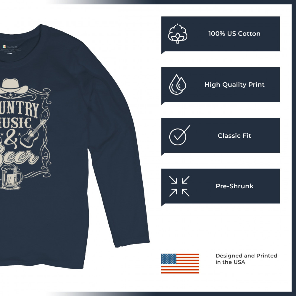 Channel your inner country star with this vintage-style design featuring guitars, a cowboy hat, scroll flourishes, and a cold beer mug. Perfect for fans of country music and beer who love rodeos, tailgates, festivals, or just chilling at the bar. Rustic charm and southern soul meet in one perfect print.