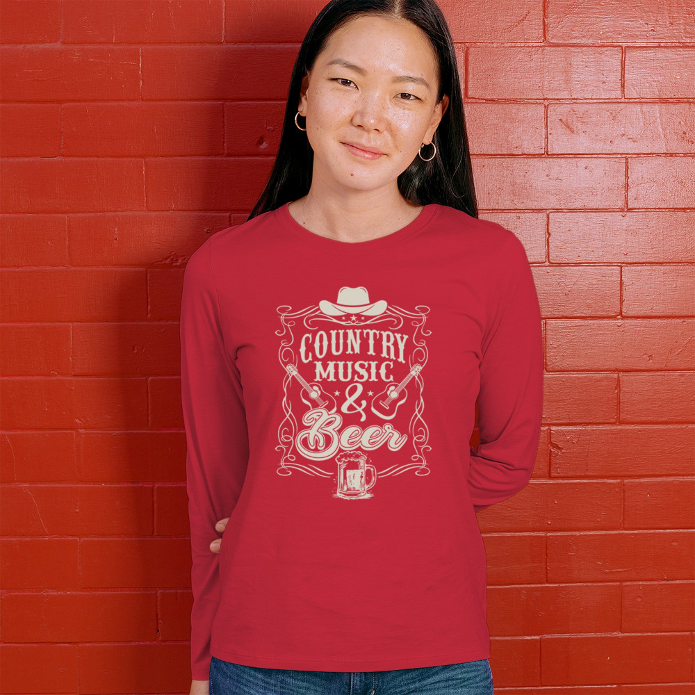 Channel your inner country star with this vintage-style design featuring guitars, a cowboy hat, scroll flourishes, and a cold beer mug. Perfect for fans of country music and beer who love rodeos, tailgates, festivals, or just chilling at the bar. Rustic charm and southern soul meet in one perfect print.