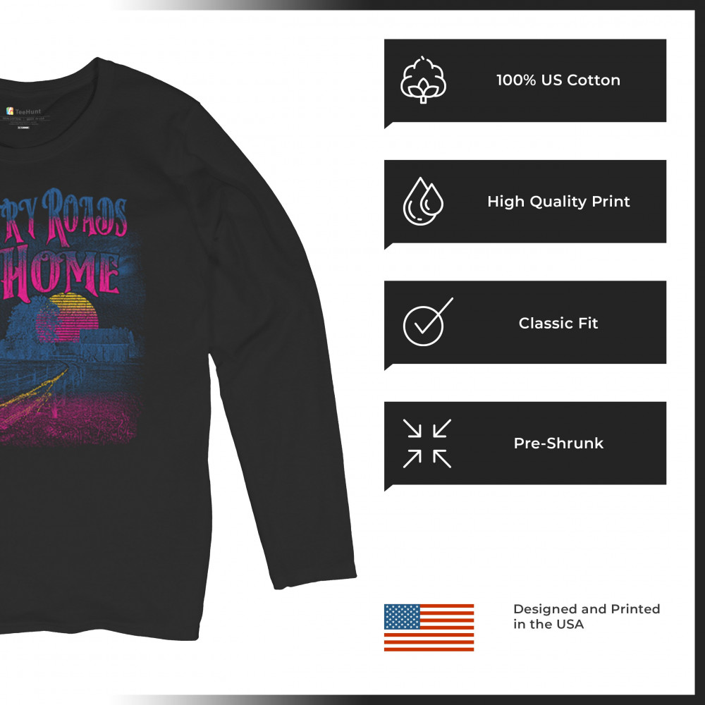Bold and nostalgic, this "Country Roads Take Me Home" design blends retro-style typography with a vivid sunset scene. It’s perfect for fans of Americana music, scenic travel, and rural freedom. Great for road trips, camping, music events, or everyday wear that channels the spirit of country life.