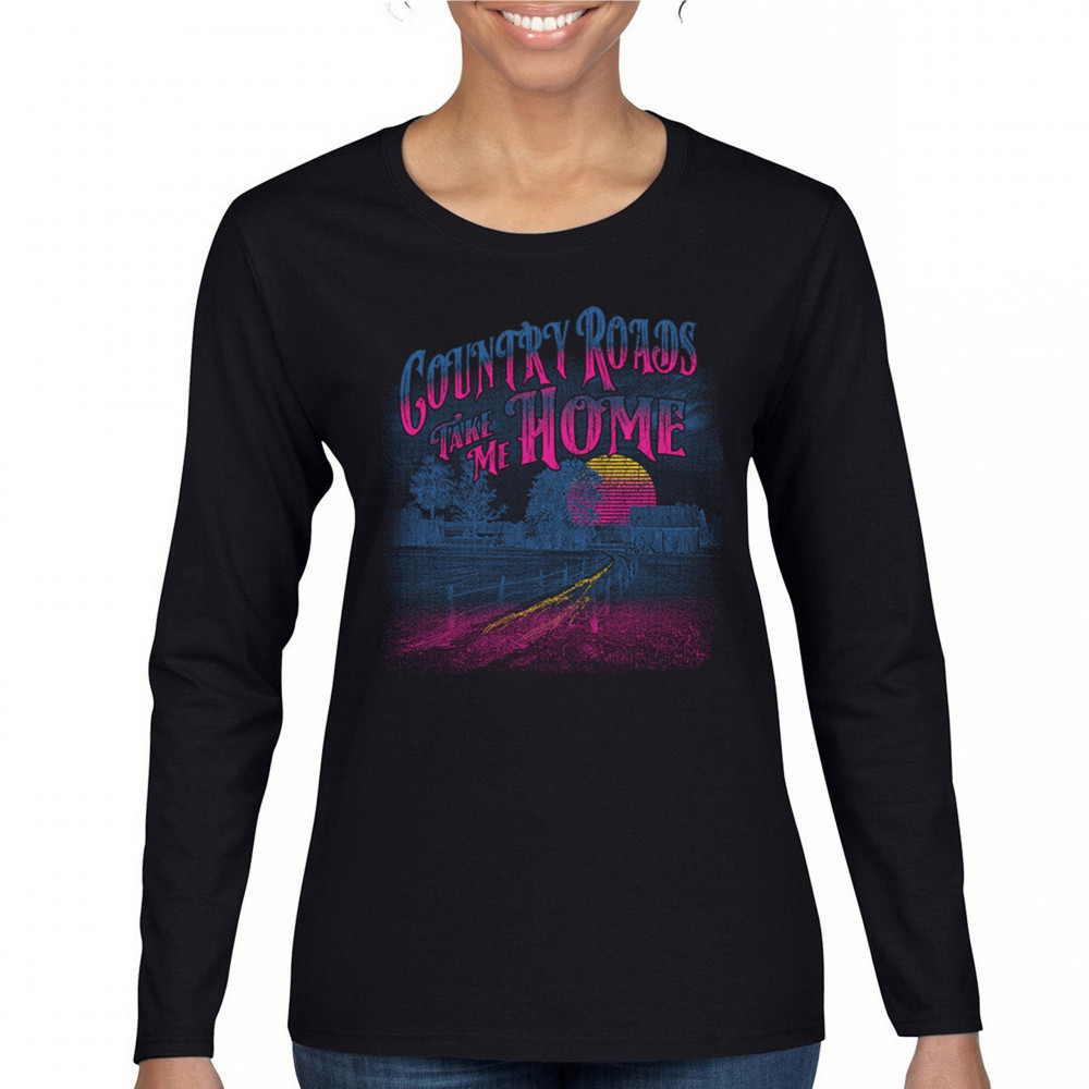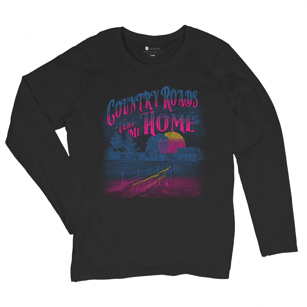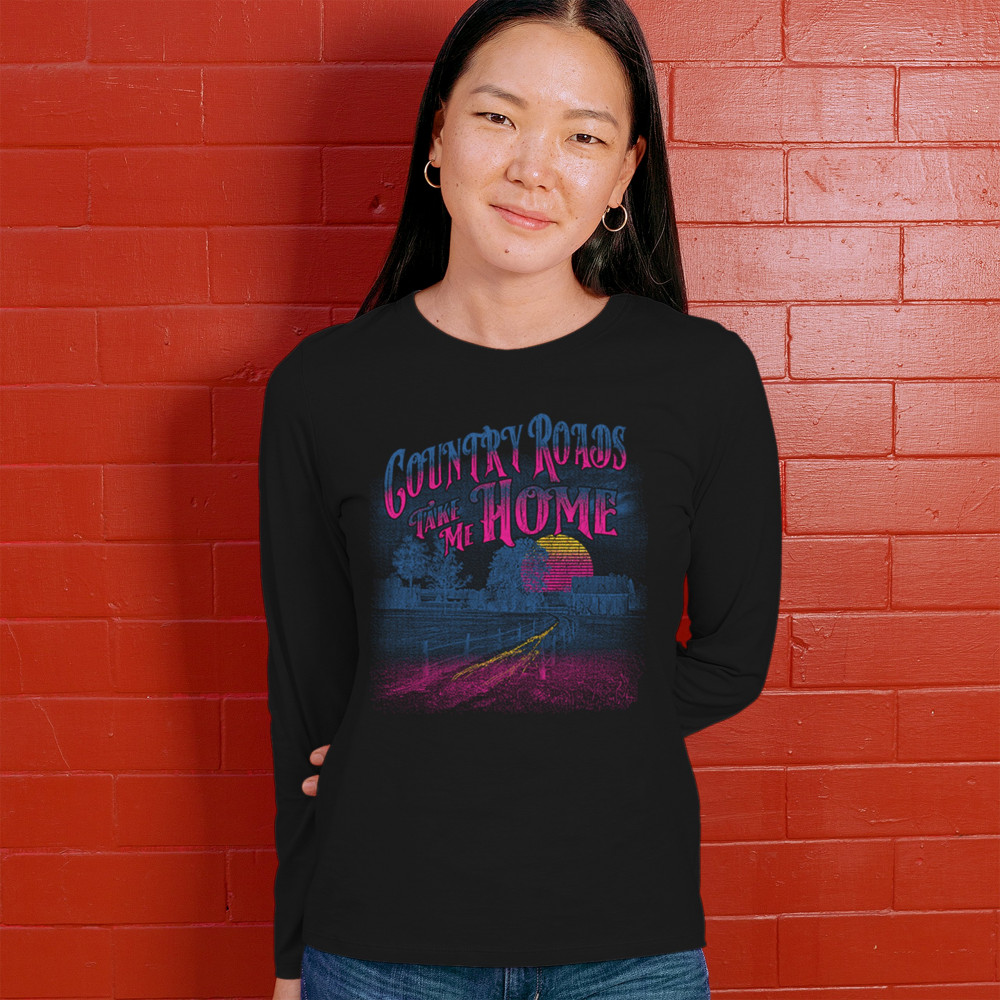 Retro sunset "Country Roads Take Me Home" design for road trip lovers, Americana fans, and country music souls. Bright, bold, and nostalgic.