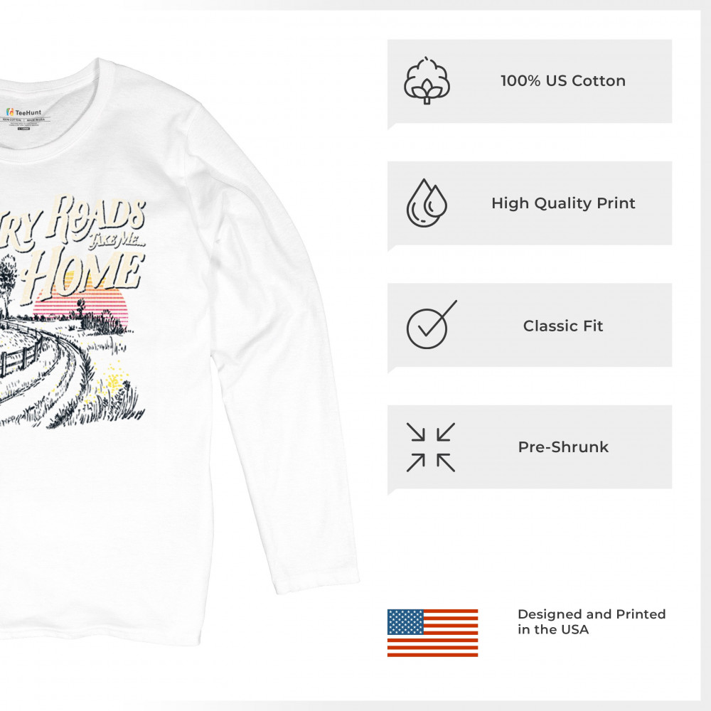 Celebrate your love for small town charm and scenic drives with this nostalgic country roads design. Featuring a bold "Take Me Home" message over a retro-styled sunset, it’s ideal for road trips, summer nights, fairs, concerts, and rural adventures. Let your wanderlust and country soul shine in every mile.