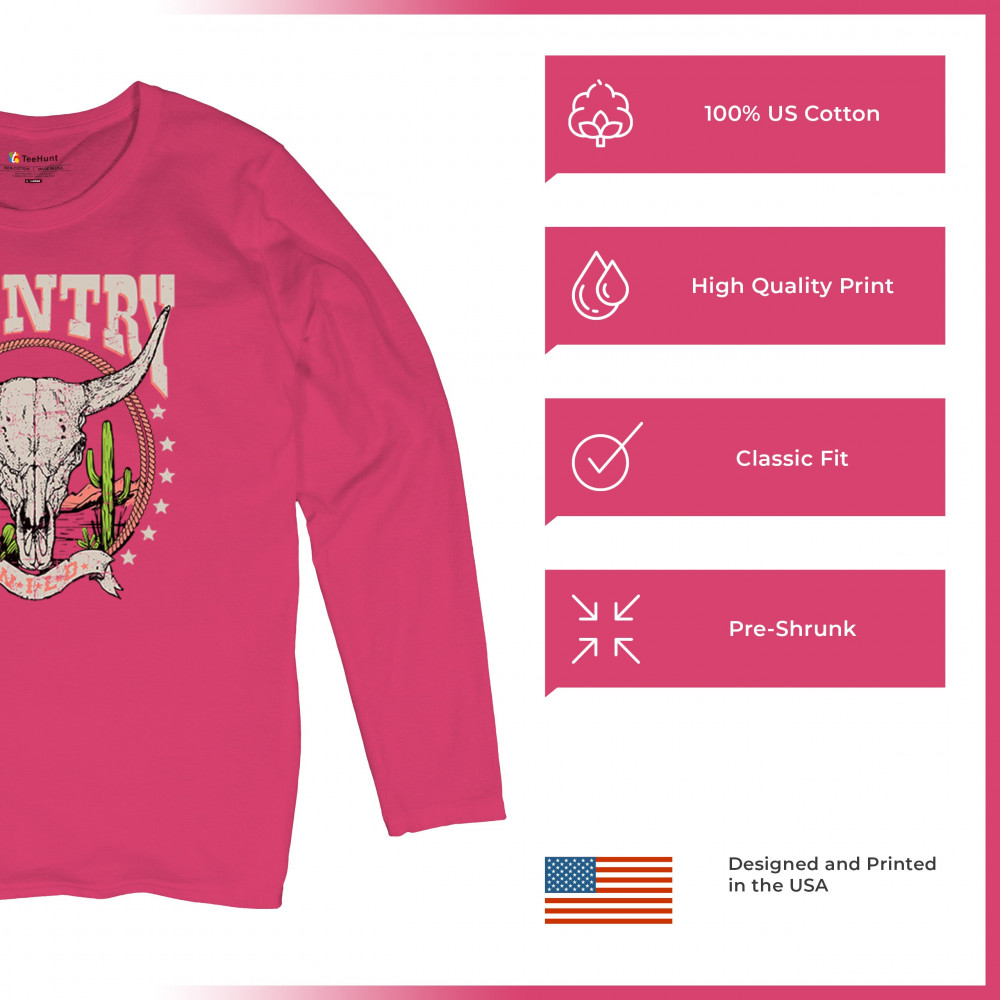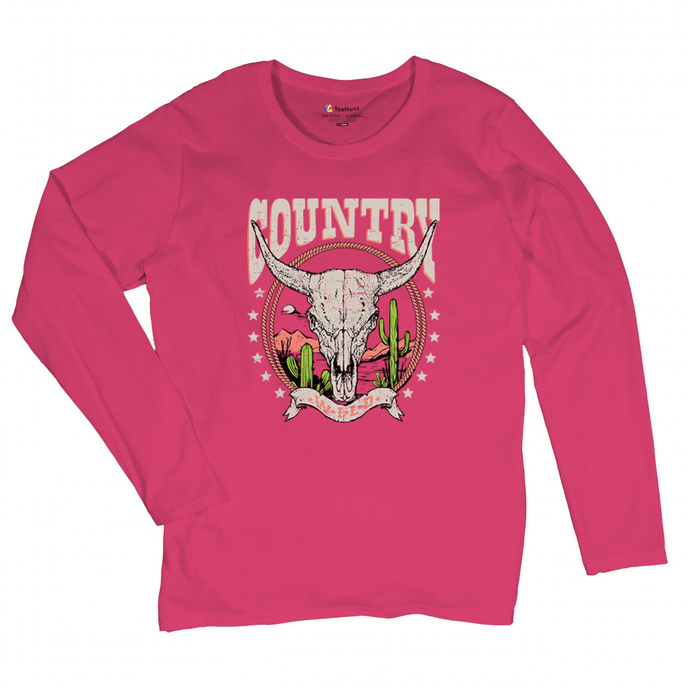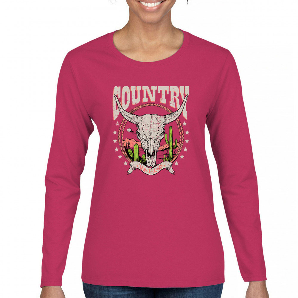 Country Wild features a steer skull with desert flair, perfect for rodeo cowboys, barn dances, country roots, and wild western spirit.
