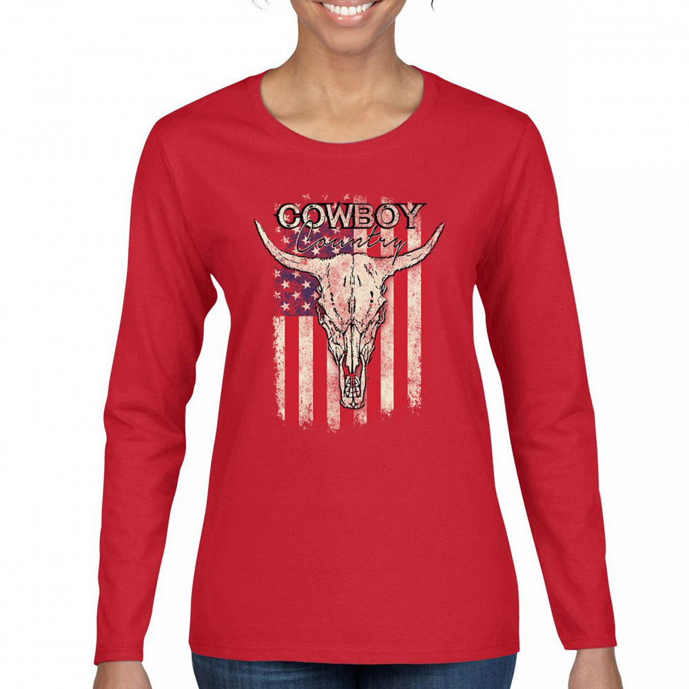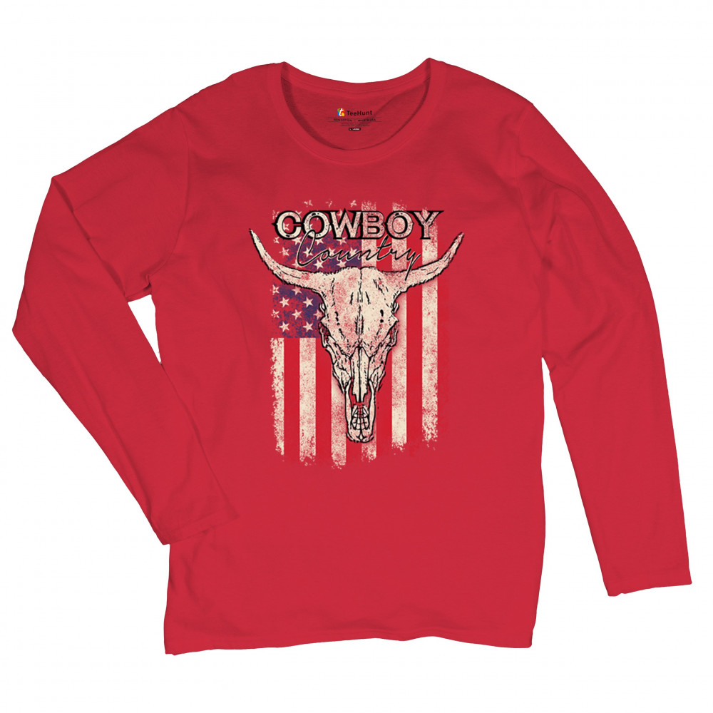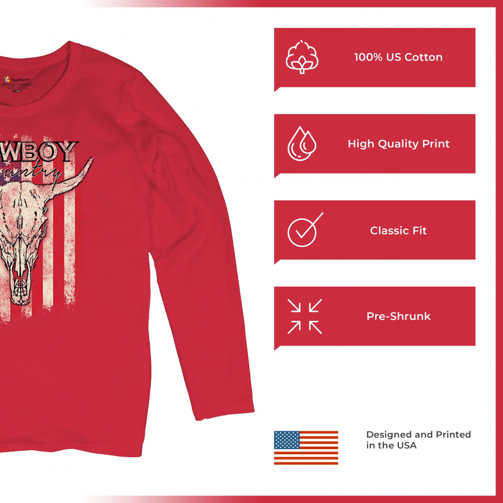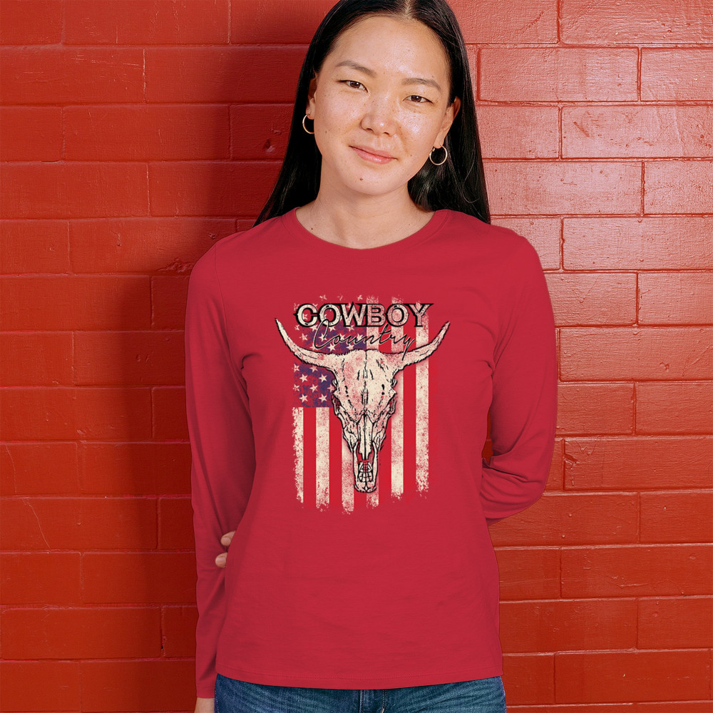 Celebrate western heritage with the Cowboy Country steer skull design, layered over a distressed American flag. This artwork embodies rustic Americana, rodeo style, and desert vibes. Perfect for cowboy décor lovers, ranch life enthusiasts, and those drawn to the wild west’s grit and prairie aesthetic. Wear your frontier spirit proudly.