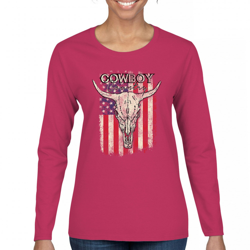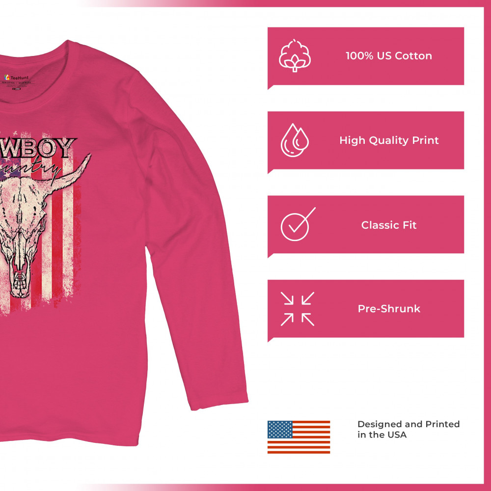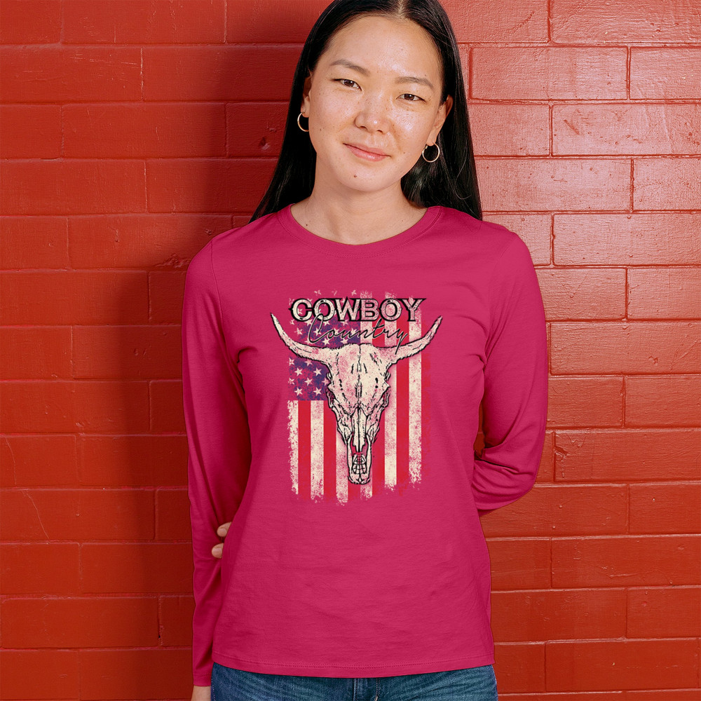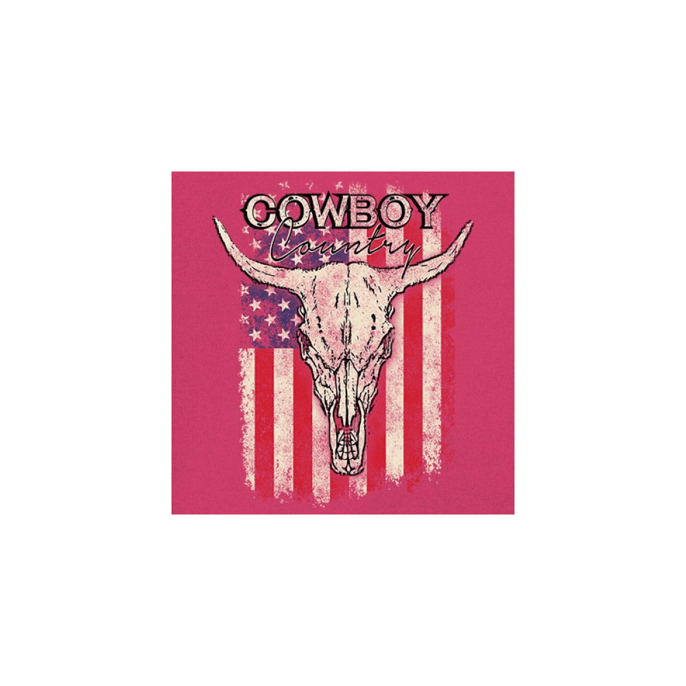 Cowboy Country steer skull design fuses rustic Americana, rodeo style, western heritage, and desert vibes for true frontier spirit.