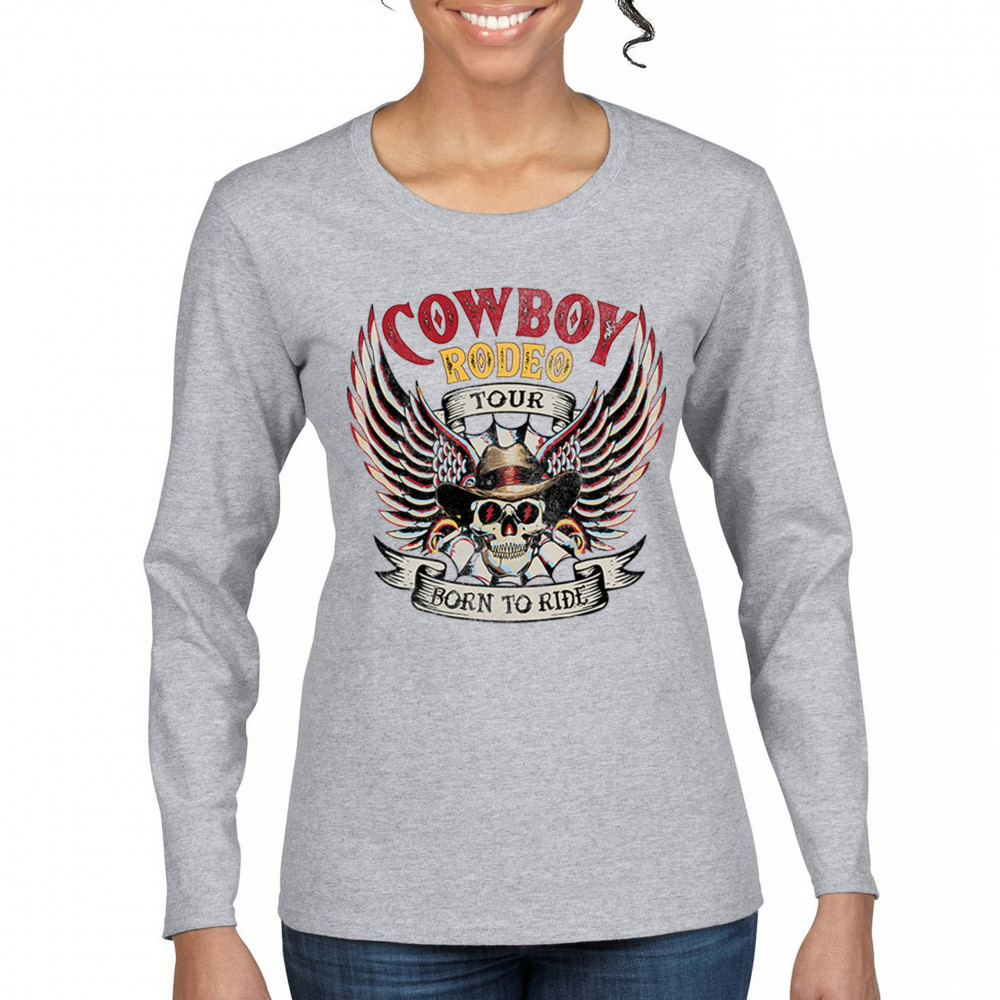Cowboy Rodeo Tour “Born to Ride†design with skull, wings, and western grit. Built for riders, rebels, and rodeo fans who live wild.