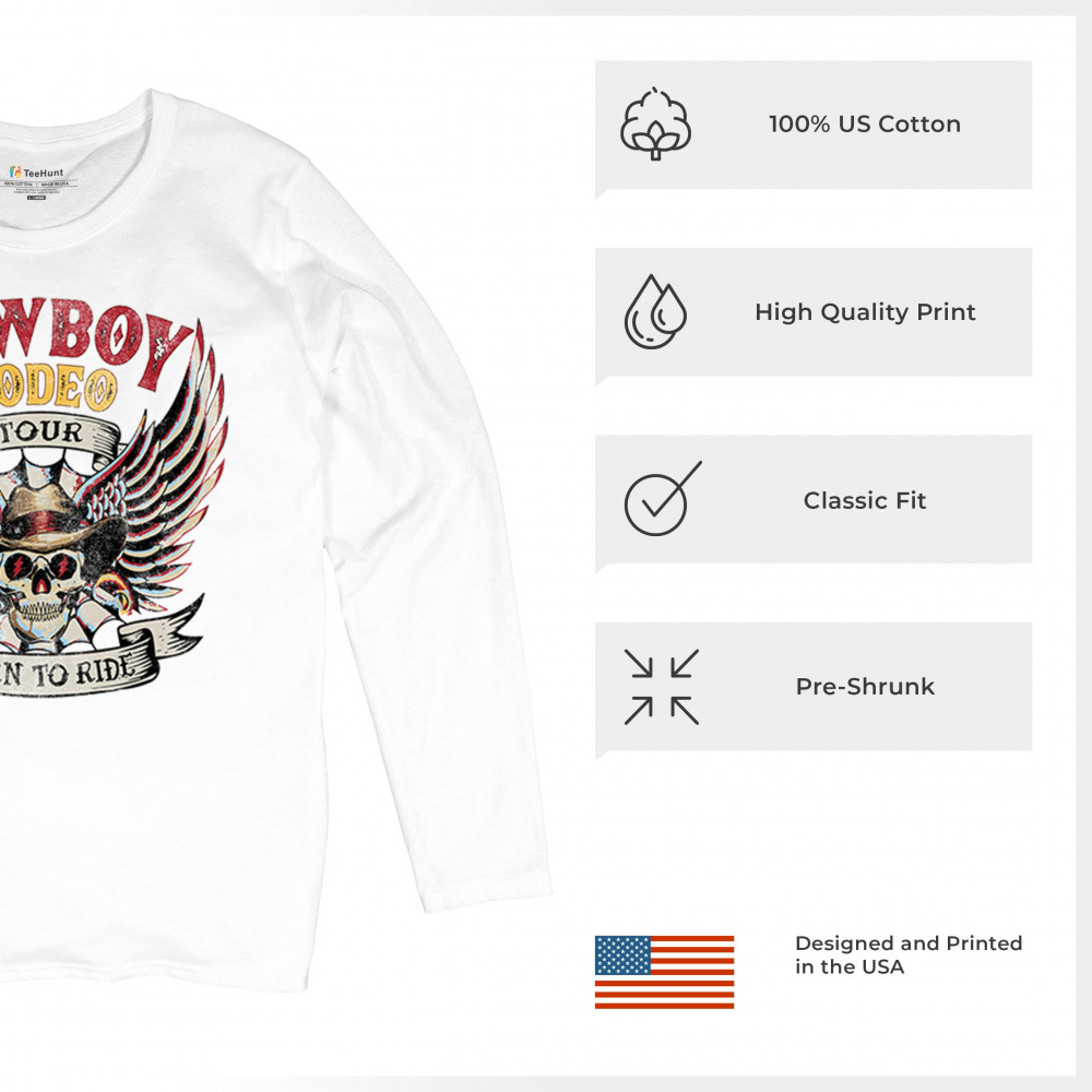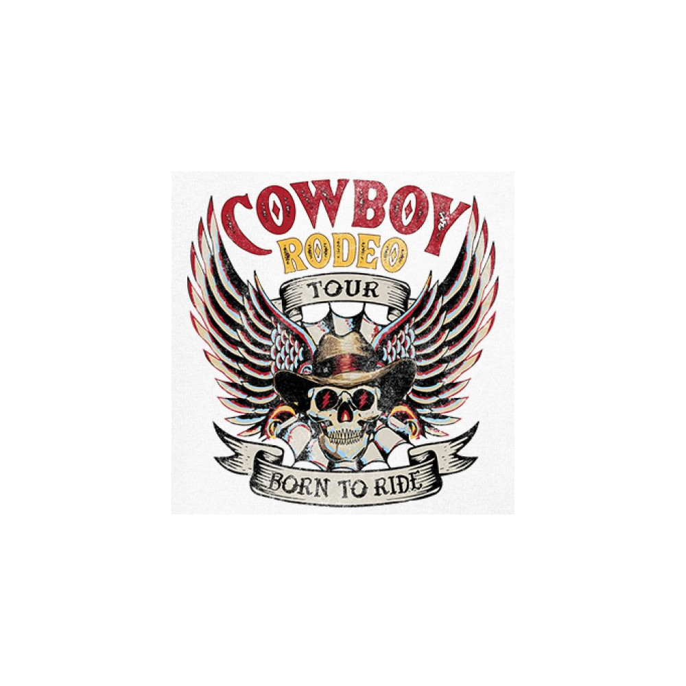 Cowboy Rodeo Tour “Born to Ride†design with skull, wings, and western grit. Built for riders, rebels, and rodeo fans who live wild.