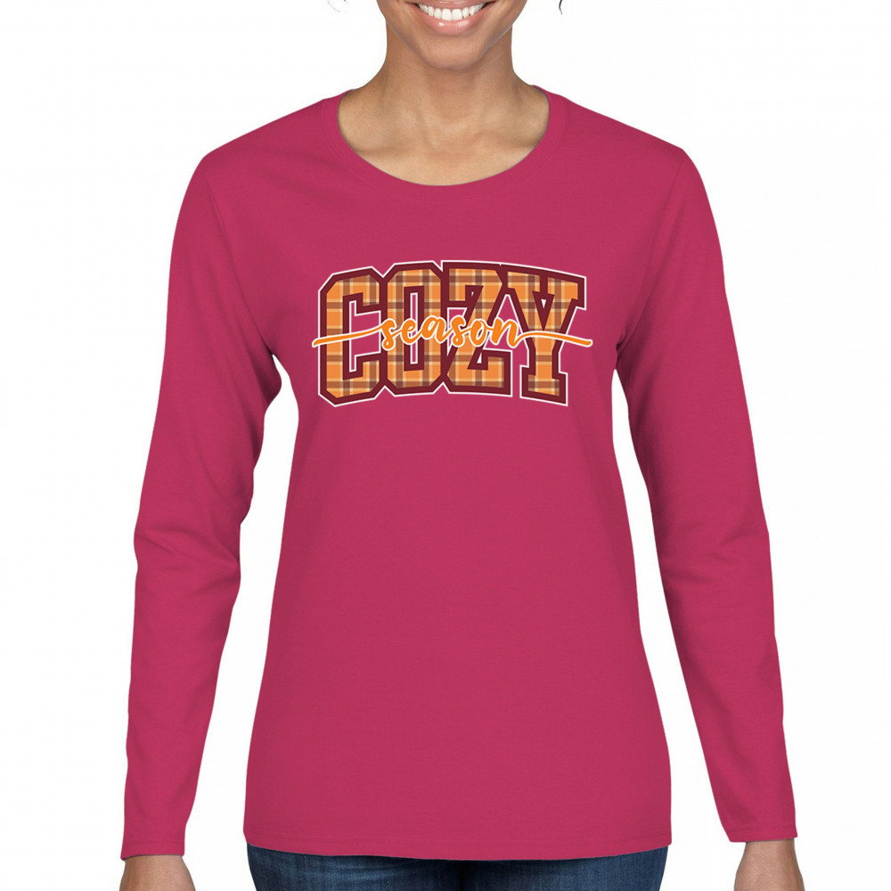 Celebrate fall with this "Cozy Season" plaid design. Perfect for autumn lovers who cherish cozy days, warm drinks, and the beauty of the season.