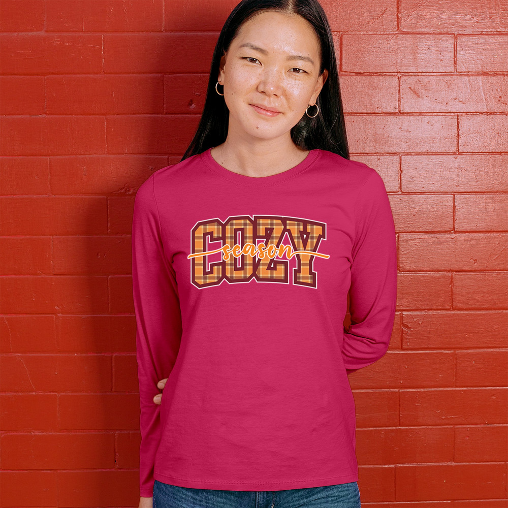 The "Cozy Season" plaid design is the perfect way to celebrate your love for all things autumn. With warm hues and a charming script, this print embodies the comfort and relaxation of the season. Whether you're spending chilly days at home or embracing the outdoor fall beauty, this design fits effortlessly into your wardrobe. It's an ideal gift for friends and family who appreciate the simple joys of autumn, including warm drinks, cozy sweaters, and the crispness of fall air.