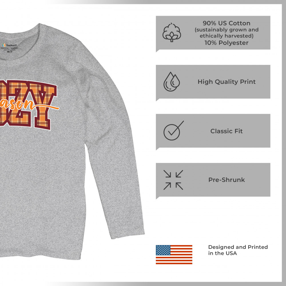 The "Cozy Season" plaid design is the perfect way to celebrate your love for all things autumn. With warm hues and a charming script, this print embodies the comfort and relaxation of the season. Whether you're spending chilly days at home or embracing the outdoor fall beauty, this design fits effortlessly into your wardrobe. It's an ideal gift for friends and family who appreciate the simple joys of autumn, including warm drinks, cozy sweaters, and the crispness of fall air.