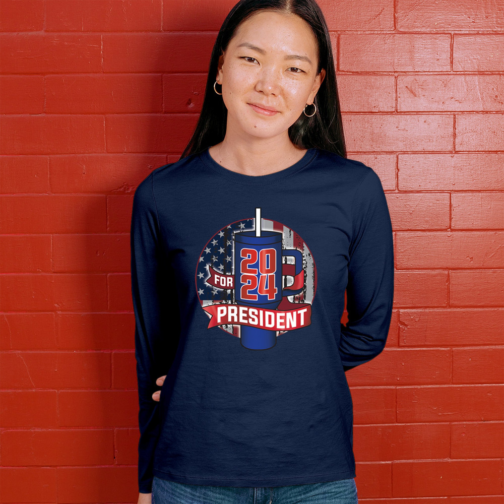 Celebrate the 2024 election season with a touch of humor with this clever design that parodies the popular water bottle craze. Perfect for those who enjoy political satire and want to make a statement, this design is ideal for casual wear, political rallies, and social gatherings. Show off your witty side with this playful and eye-catching graphic, and get ready to spark conversations and laughter wherever you go.