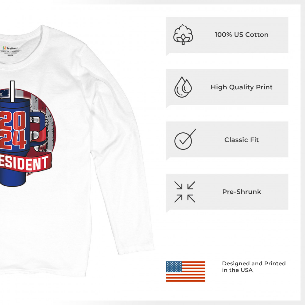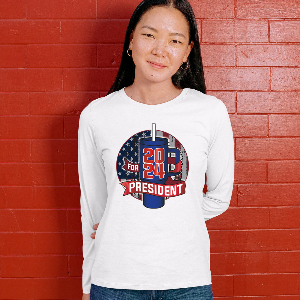 Celebrate the 2024 election season with a touch of humor with this clever design that parodies the popular water bottle craze. Perfect for those who enjoy political satire and want to make a statement, this design is ideal for casual wear, political rallies, and social gatherings. Show off your witty side with this playful and eye-catching graphic, and get ready to spark conversations and laughter wherever you go.
