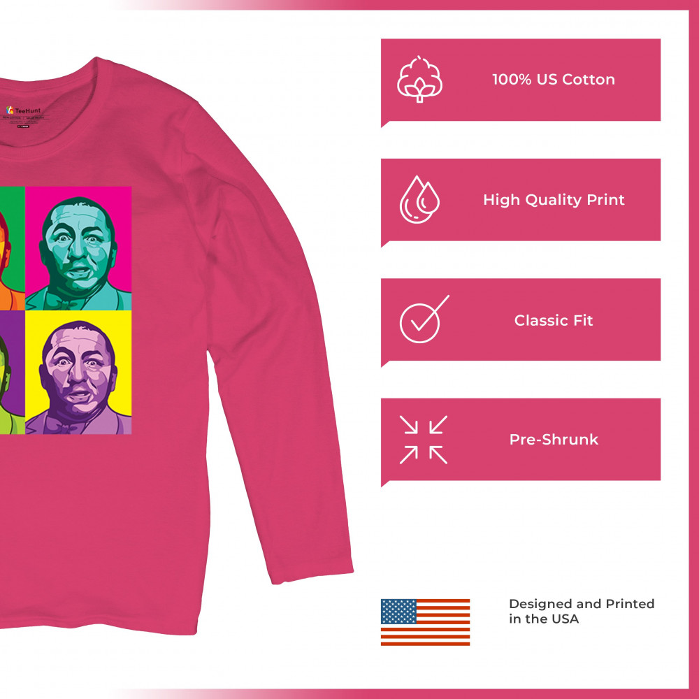 Experience Curly in full color with our pop art Three Stooges T-shirt—a fresh take on a classic that's as unique and spirited as the man himself!