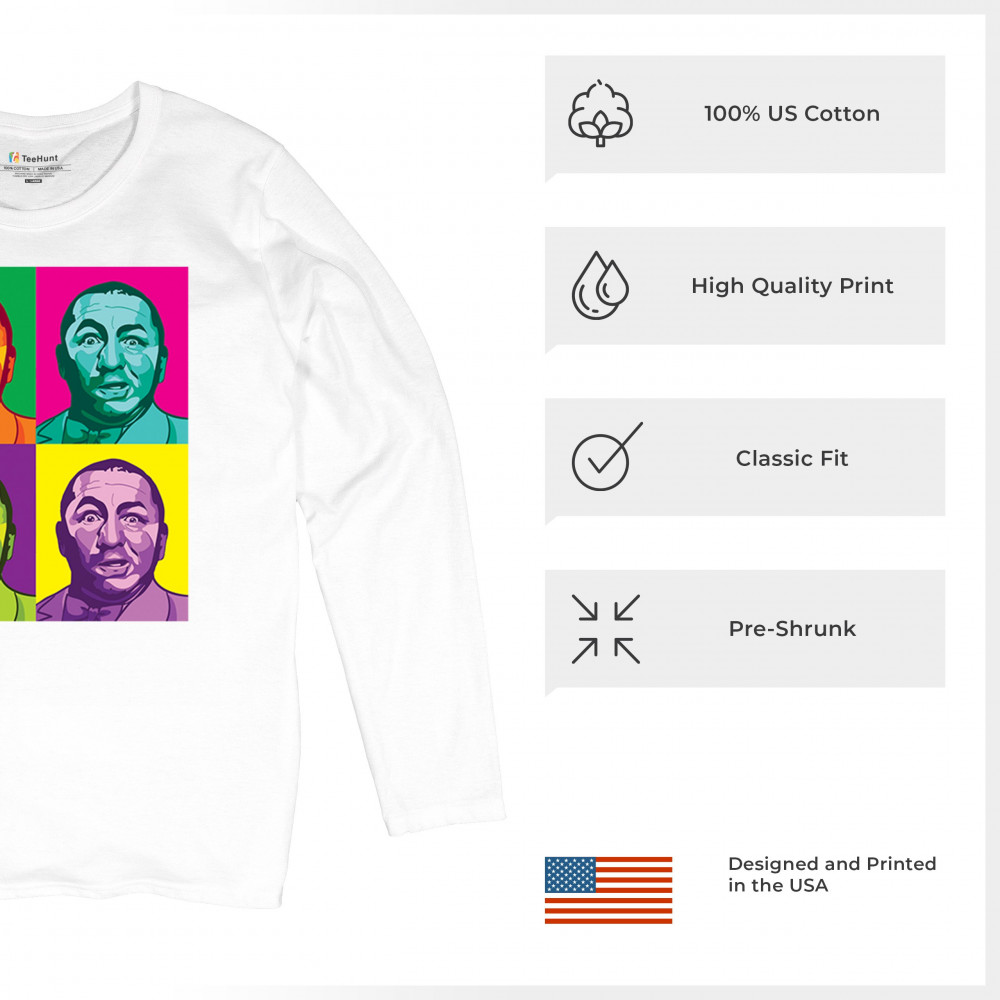 Experience Curly in full color with our pop art Three Stooges T-shirt—a fresh take on a classic that's as unique and spirited as the man himself!