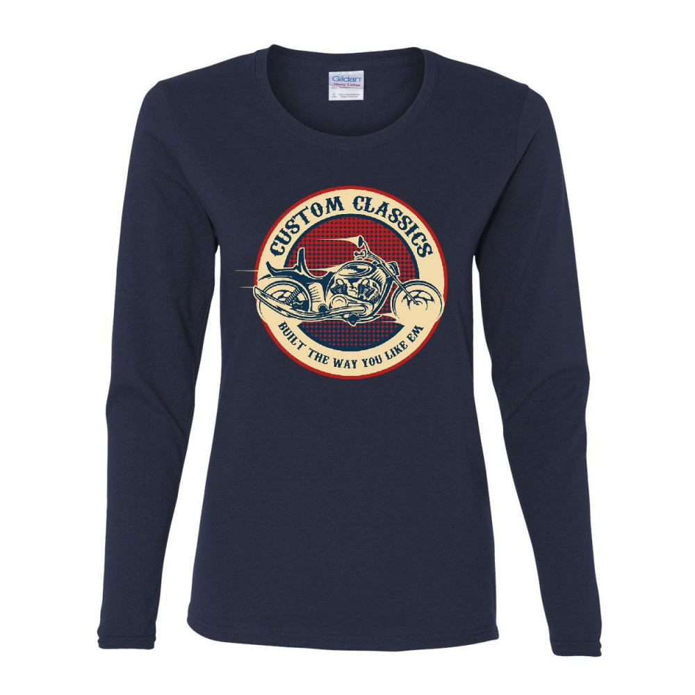 CUSTOM CLASSICS women's long sleeve tee chopper bobber biker rte 66 live to ride navy blue