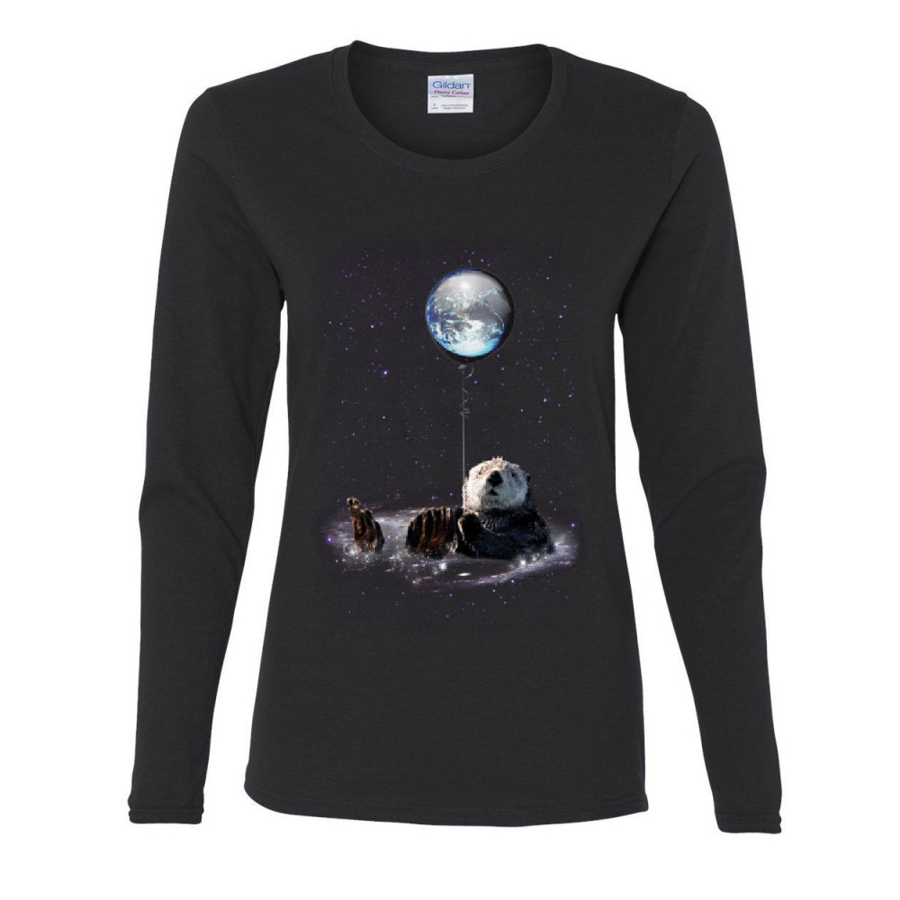 OTTER SPACE cute otter bathing in space women's long sleeve tee funny universe galaxy earth black