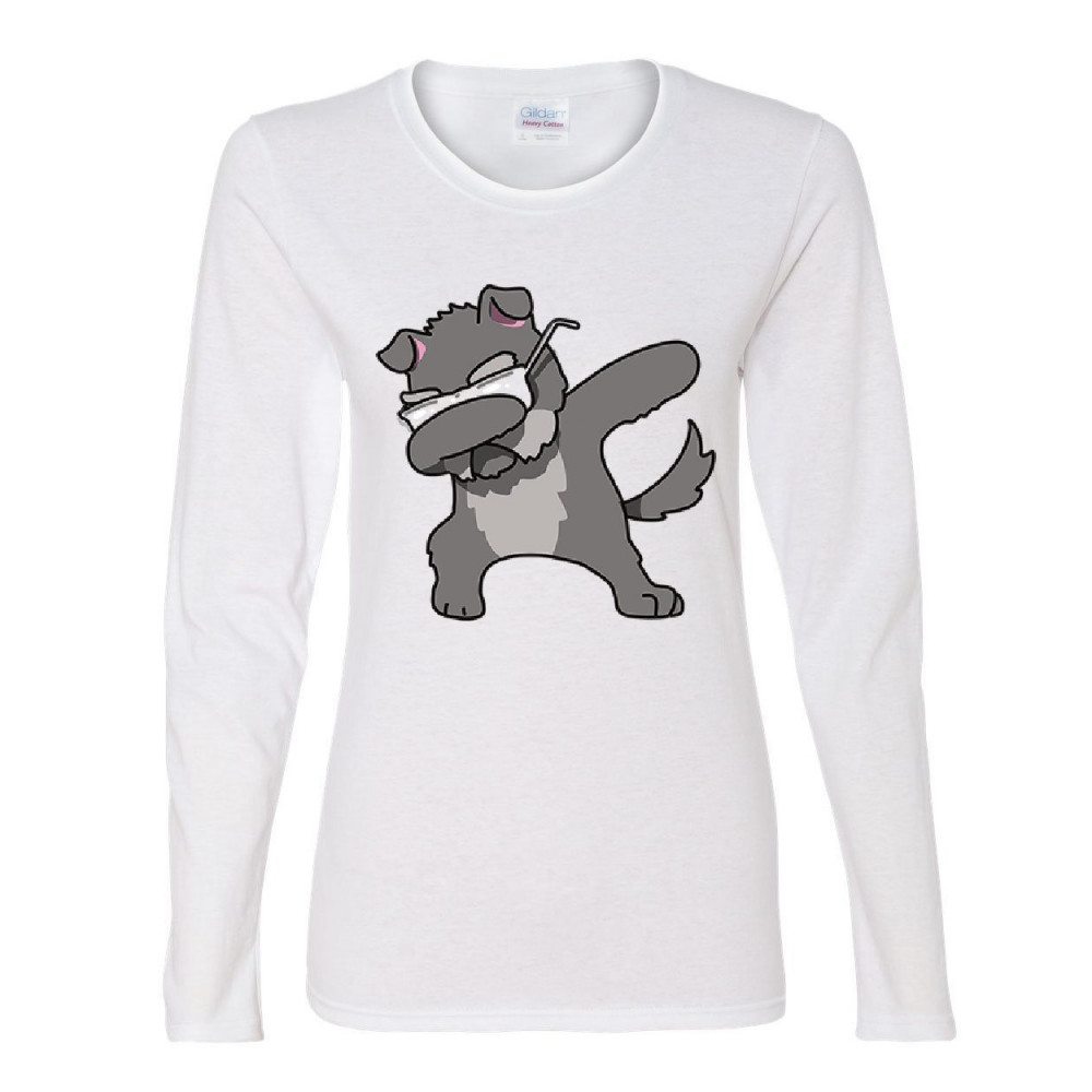 DABBING DOG in glasses women's long sleeve tee doggie dab pet lovers pup puppy white