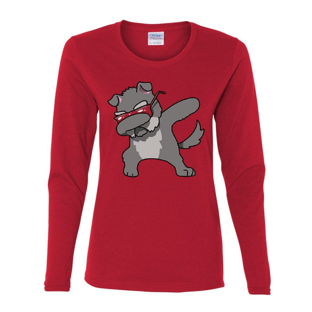 DABBING DOG in glasses women's long sleeve tee doggie dab pet lovers pup puppy red