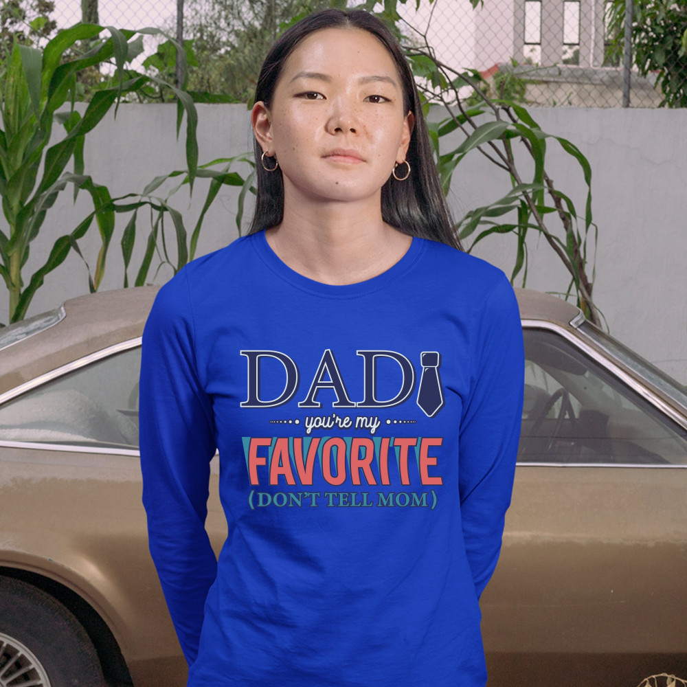DAD YOU'RE MY FAVORITE (DON'T TELL MOM) dad you're my favorite don't tell mom women's long sleeve t-shirt father's day royal blue