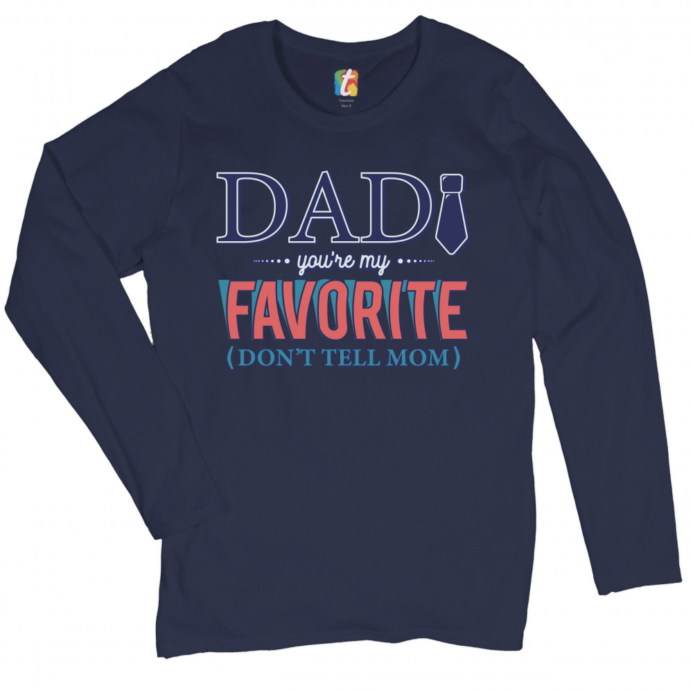 DAD YOU'RE MY FAVORITE (DON'T TELL MOM) dad you're my favorite don't tell mom women's long sleeve t-shirt father's day navy blue