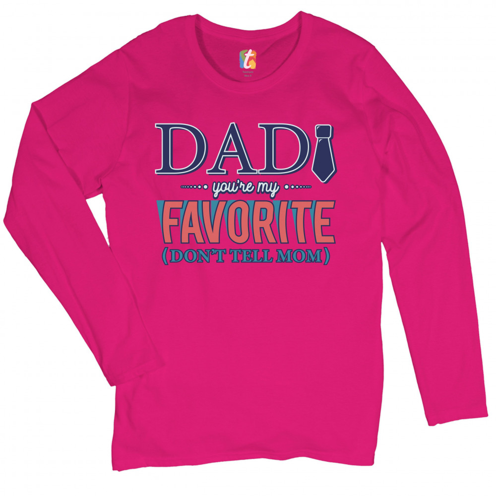 DAD YOU'RE MY FAVORITE (DON'T TELL MOM) dad you're my favorite don't tell mom women's long sleeve t-shirt father's day pink