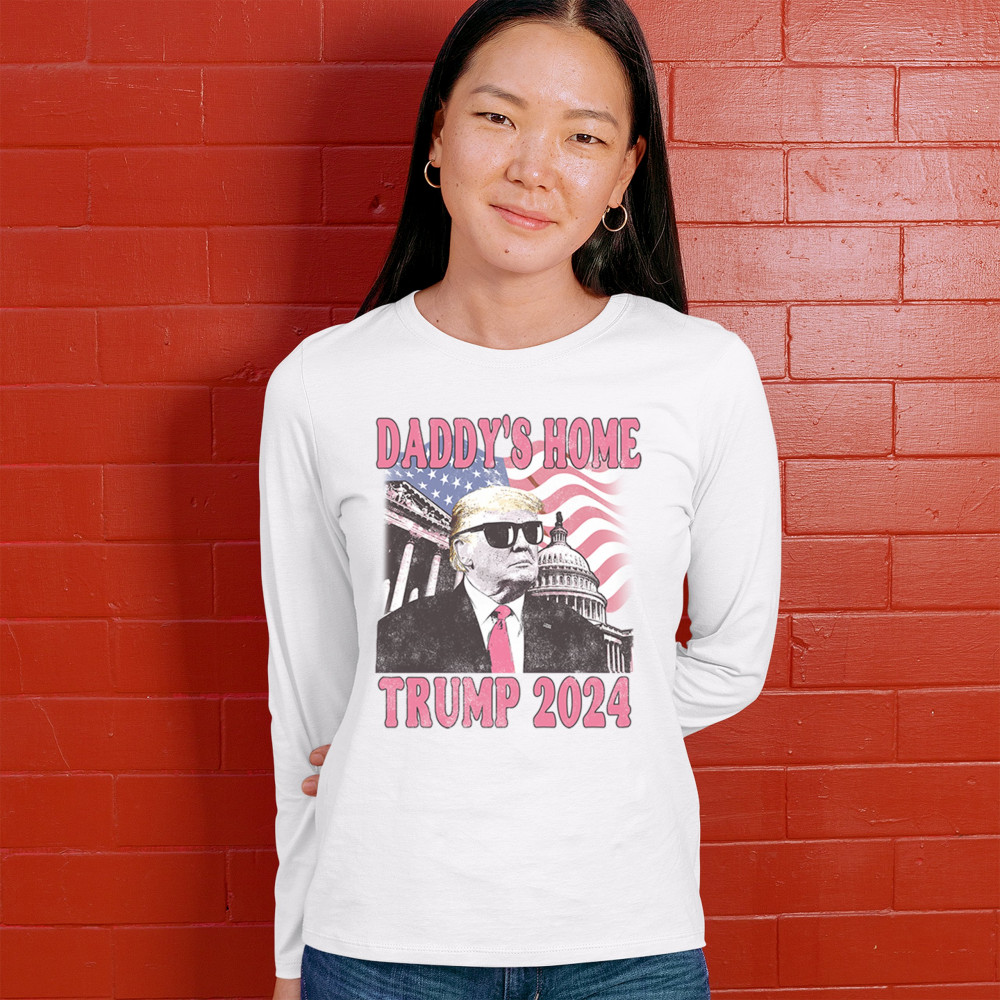 Support Donald Trump with our "Daddy's Home Trump 2024" design, showcasing strength and patriotism. Perfect for conservative supporters.