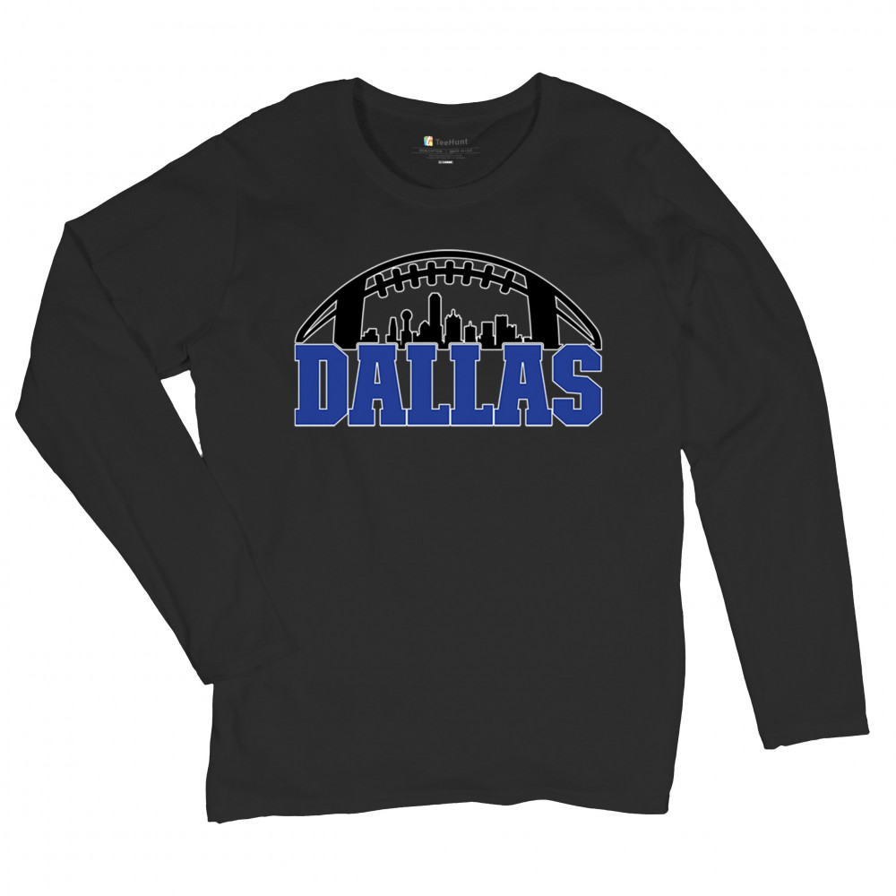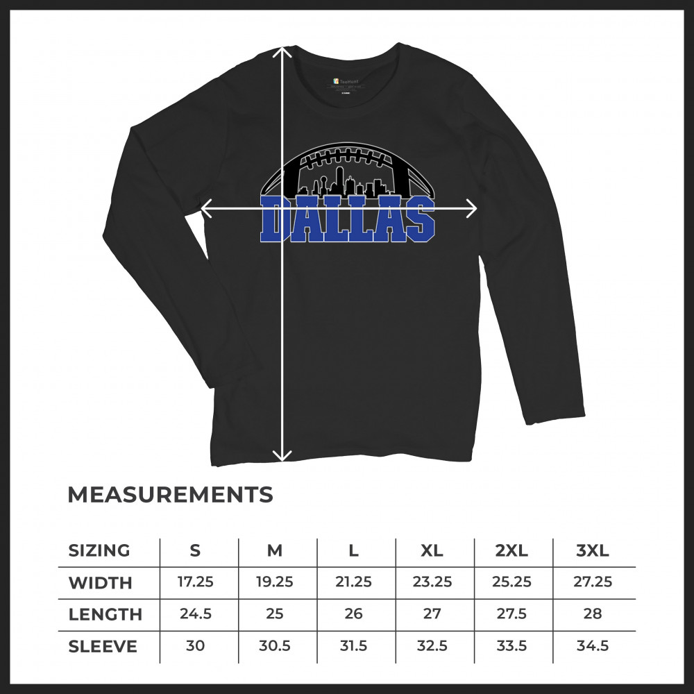 Show off your Dallas pride with a bold football-themed design featuring the city's skyline. Perfect for game days, tailgates, and passionate fans.