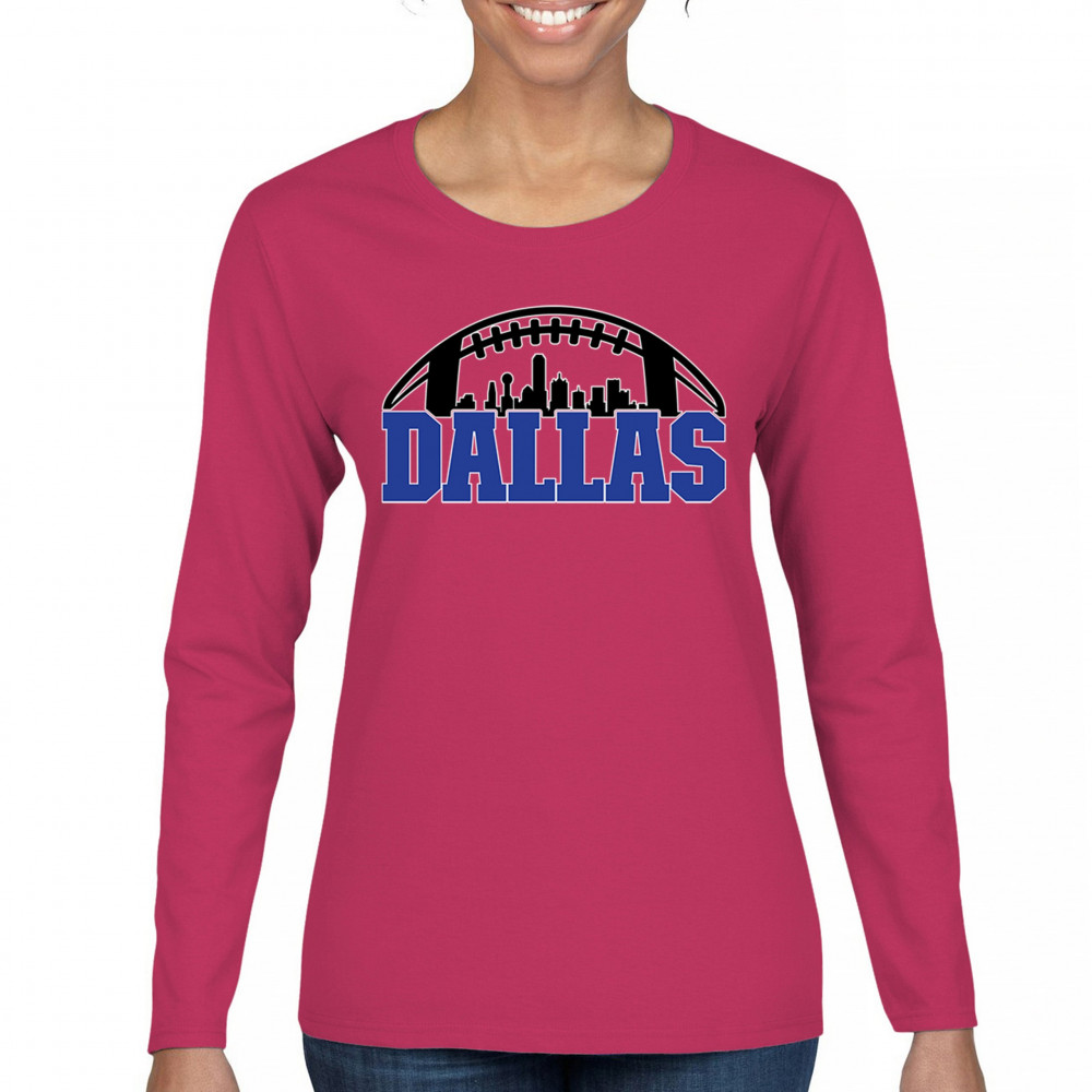 Show off your Dallas pride with a bold football-themed design featuring the city's skyline. Perfect for game days, tailgates, and passionate fans.