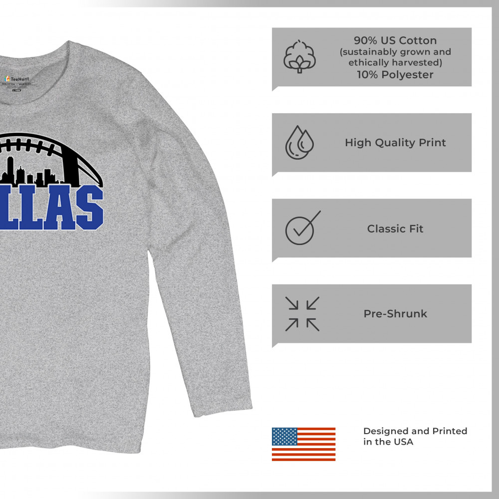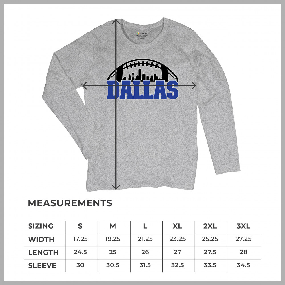 Show off your Dallas pride with a bold football-themed design featuring the city's skyline. Perfect for game days, tailgates, and passionate fans.