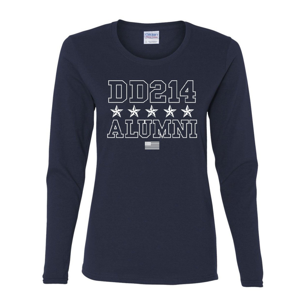 DD214 ALUMNI MILITARY dd214 alumni women's long sleeve tee patriotic military soldier veteran us flag navy blue