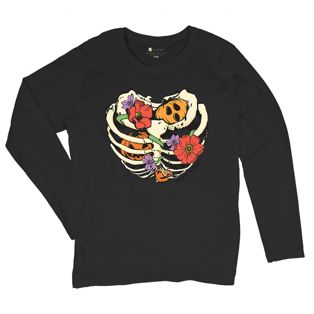 DEAD INSIDE women's long sleeve t-shirt halloween rib cage trick or treat cute black
