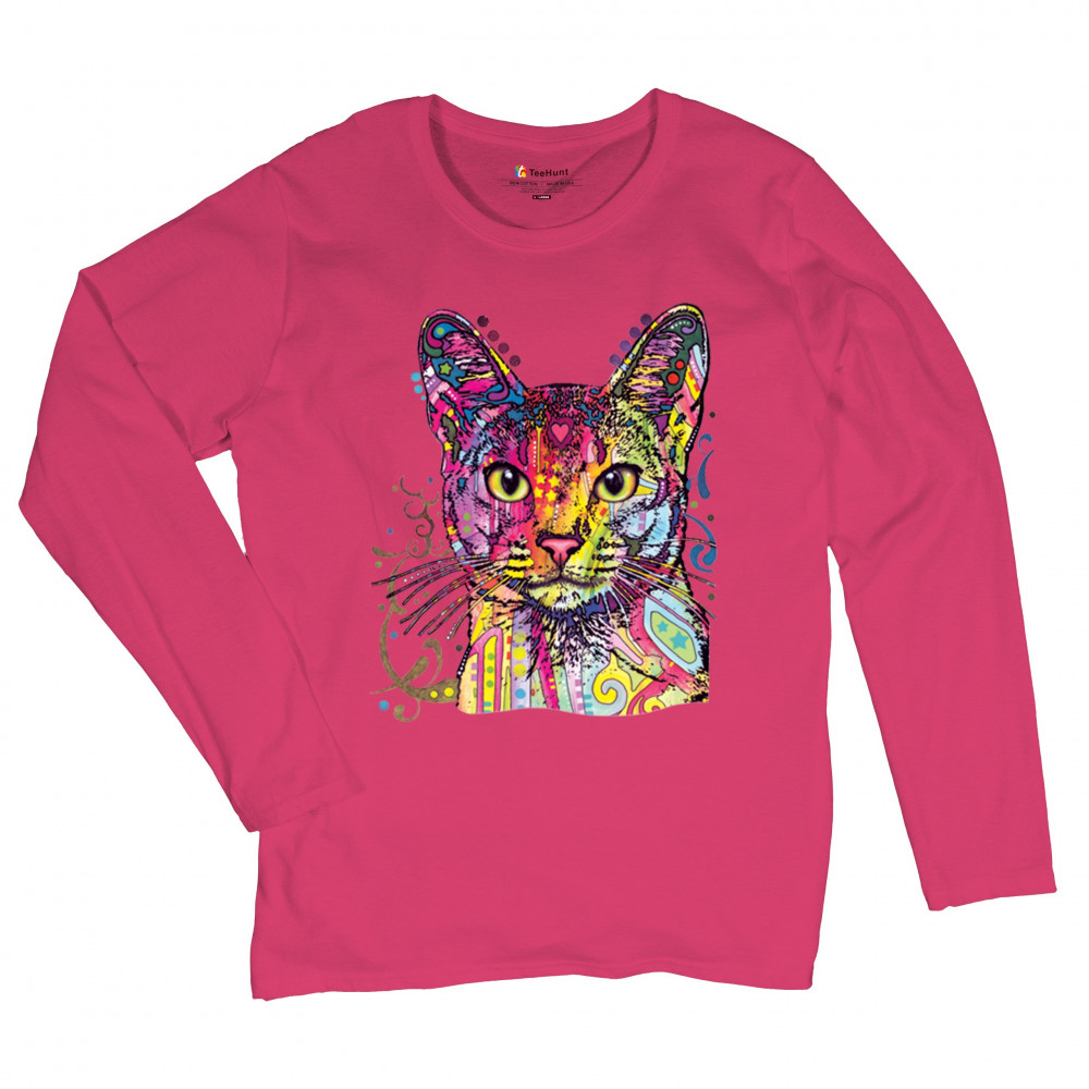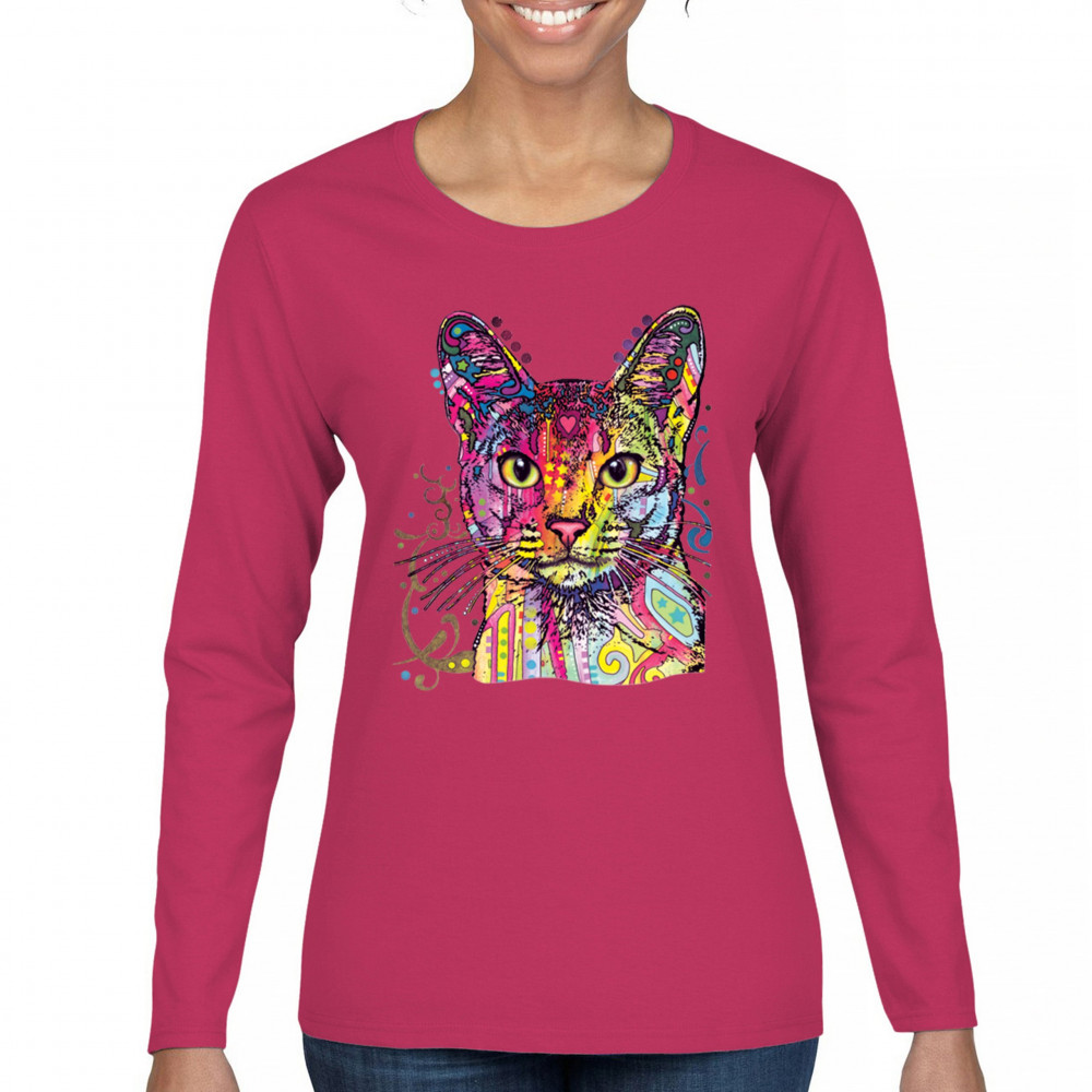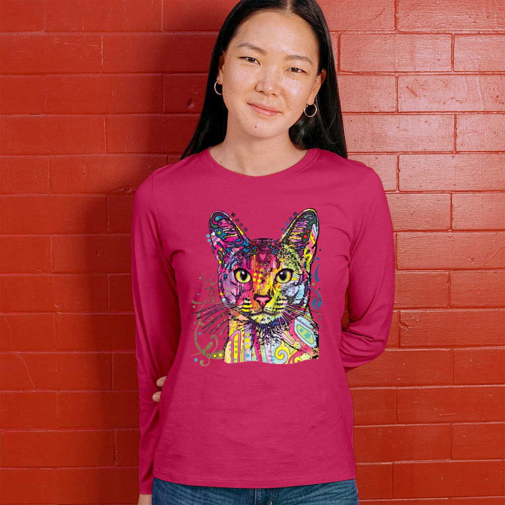 DEAN RUSSO ABYSSINIAN CAT women's long sleeve t-shirt colorful cute kitten pet pink