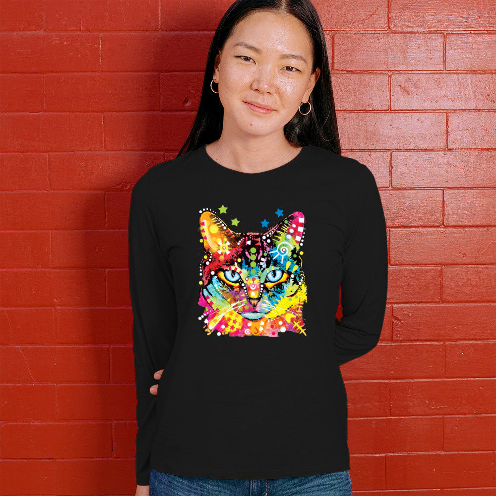 DEAN RUSSO BLUE EYES CAT women's long sleeve t-shirt colorful cute kitten pet black
