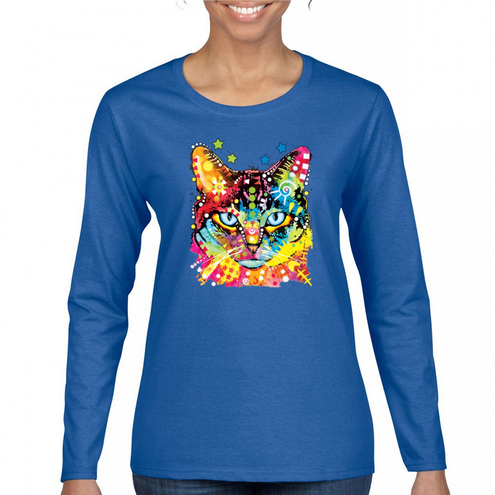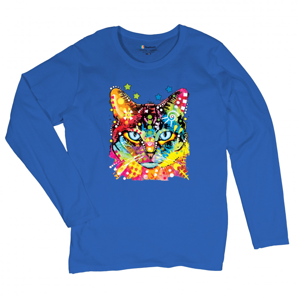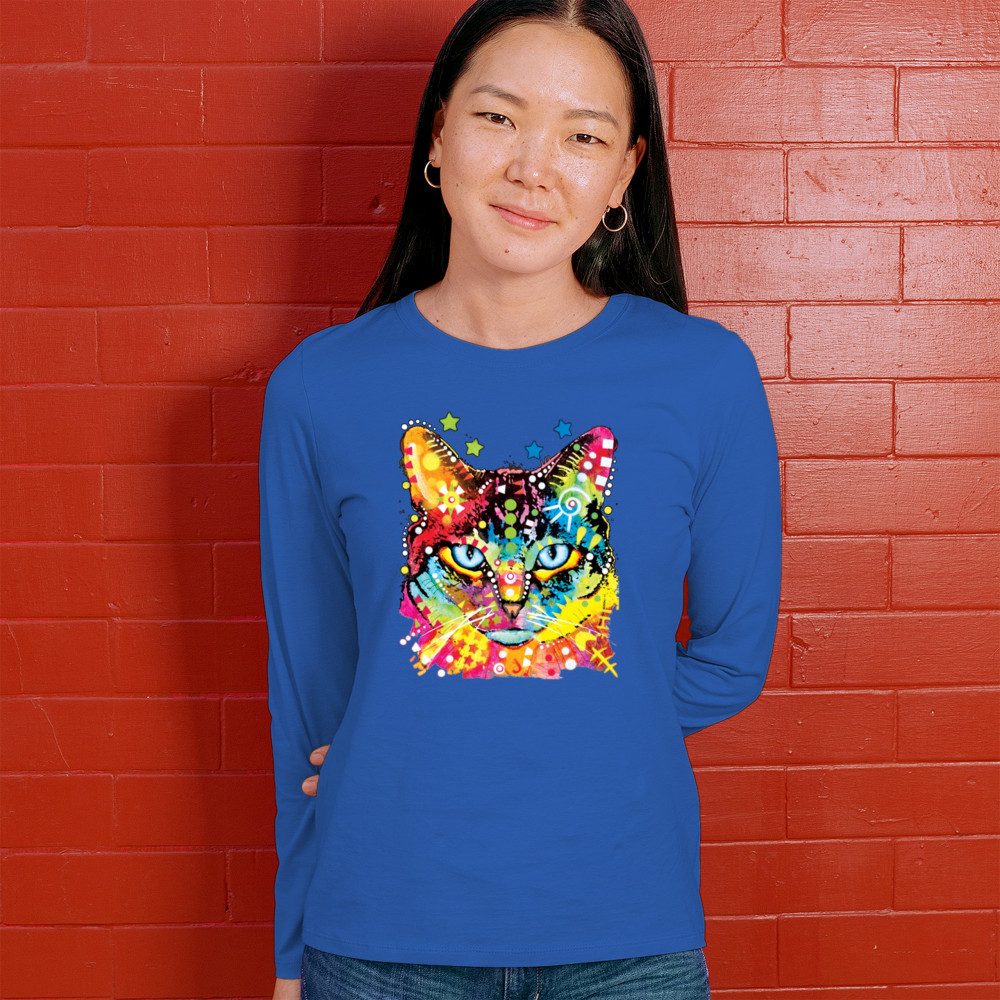 DEAN RUSSO BLUE EYES CAT women's long sleeve t-shirt colorful cute kitten pet royal blue