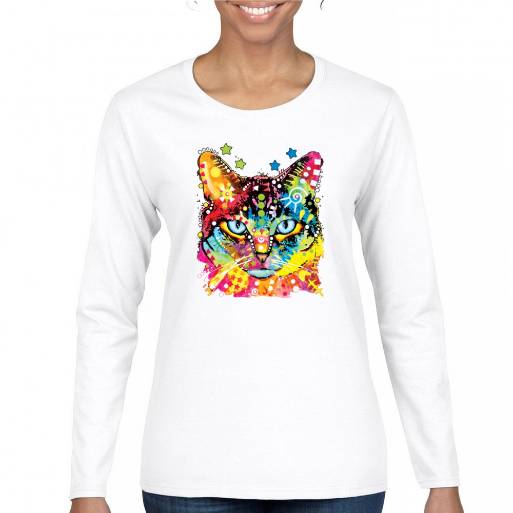 DEAN RUSSO BLUE EYES CAT women's long sleeve t-shirt colorful cute kitten pet white