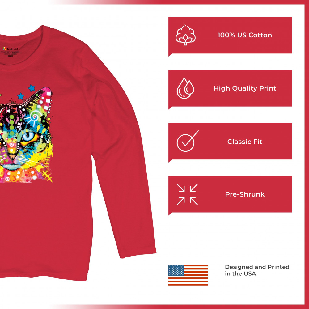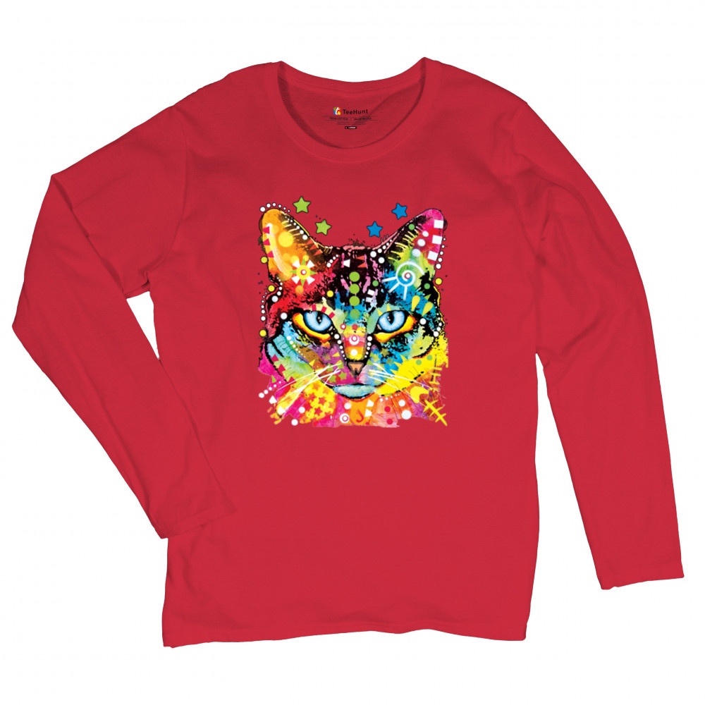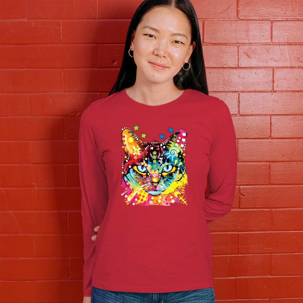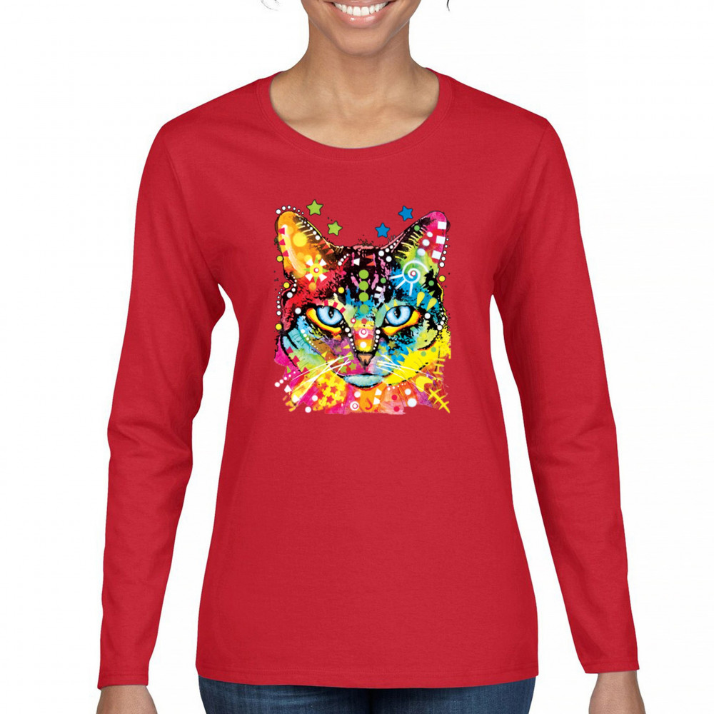 DEAN RUSSO BLUE EYES CAT women's long sleeve t-shirt colorful cute kitten pet red