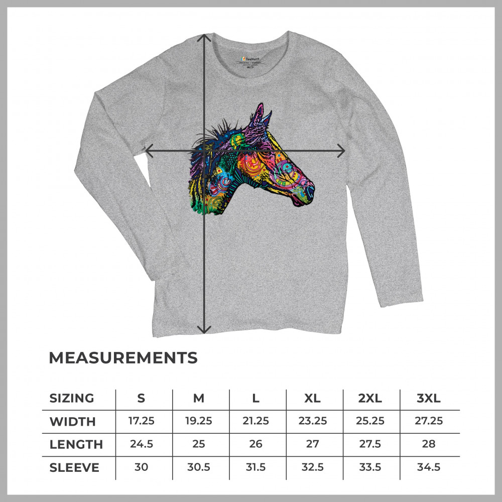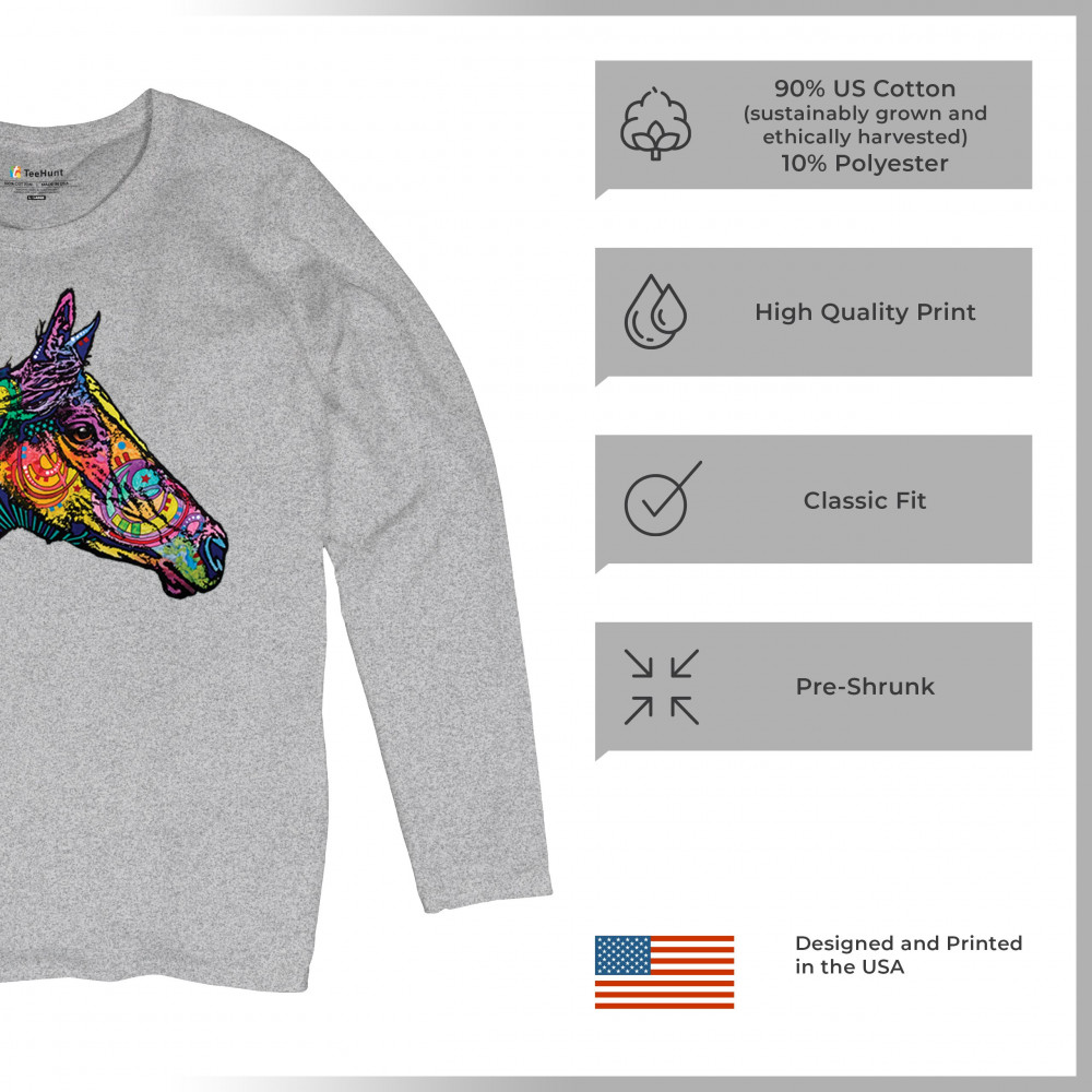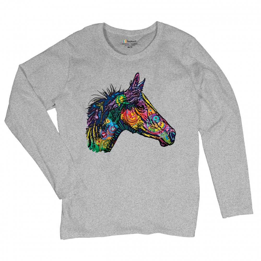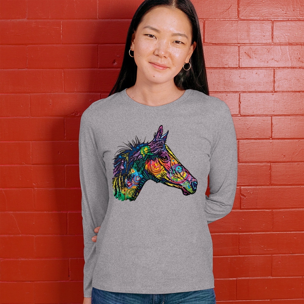 DEAN RUSSO COLORFUL HORSE women's long sleeve t-shirt neon mosaic wild mustang gray