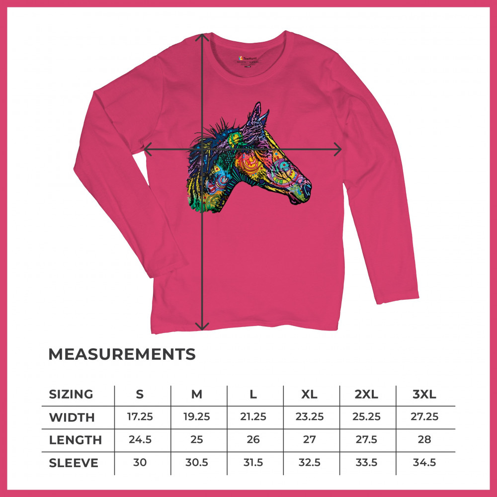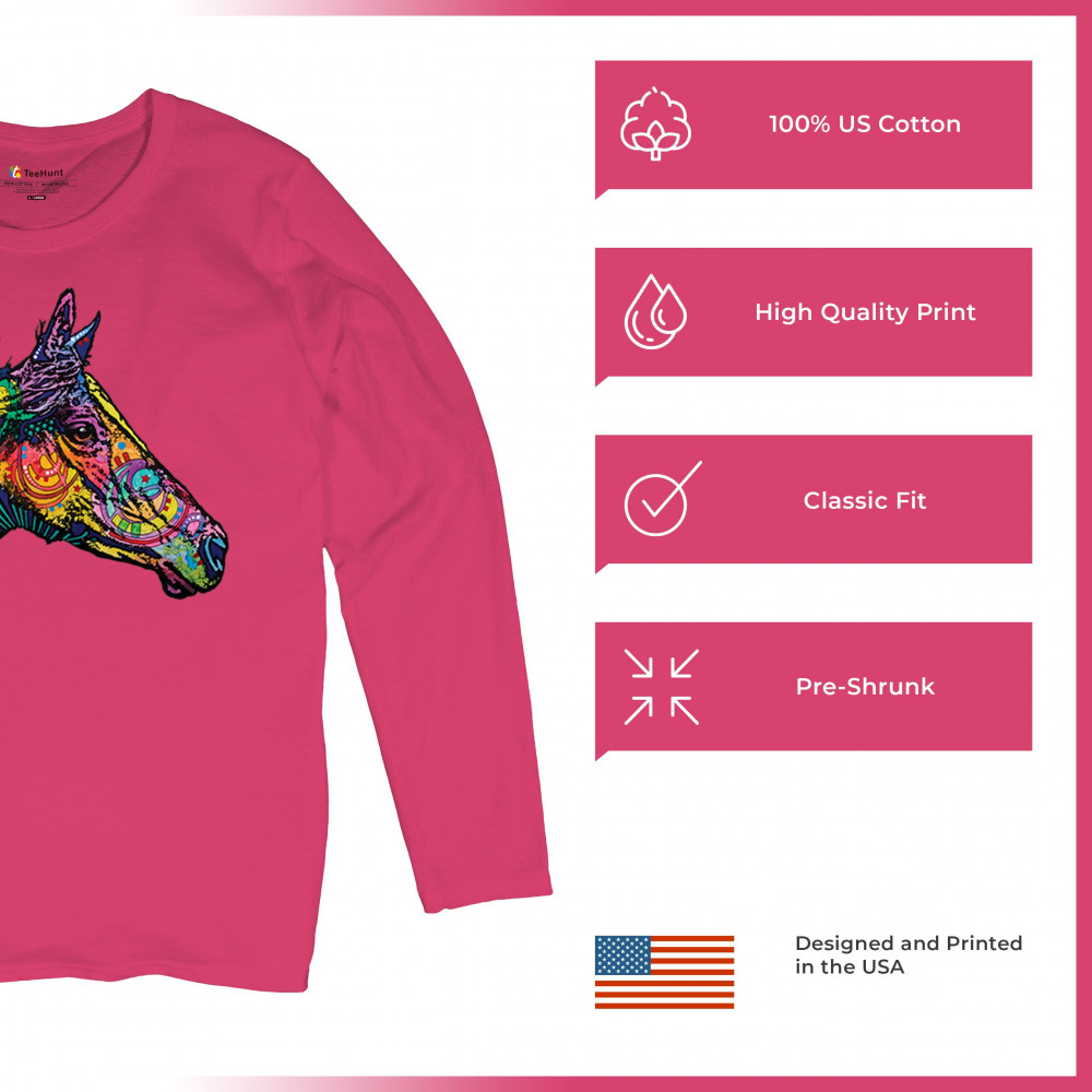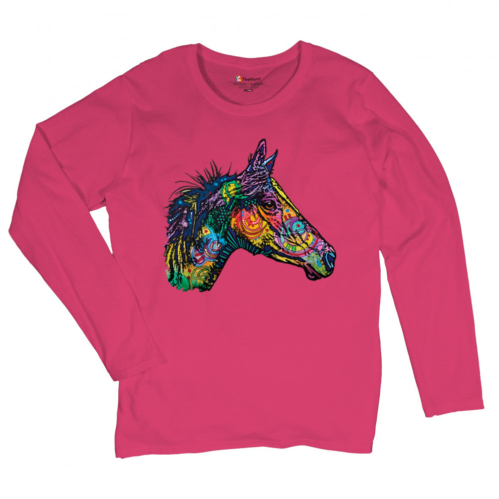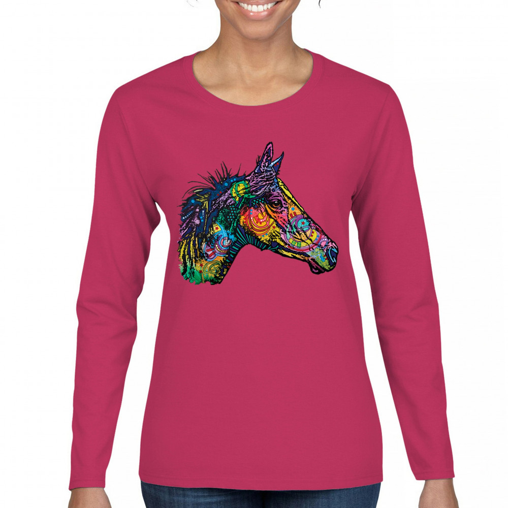 DEAN RUSSO COLORFUL HORSE women's long sleeve t-shirt neon mosaic wild mustang pink