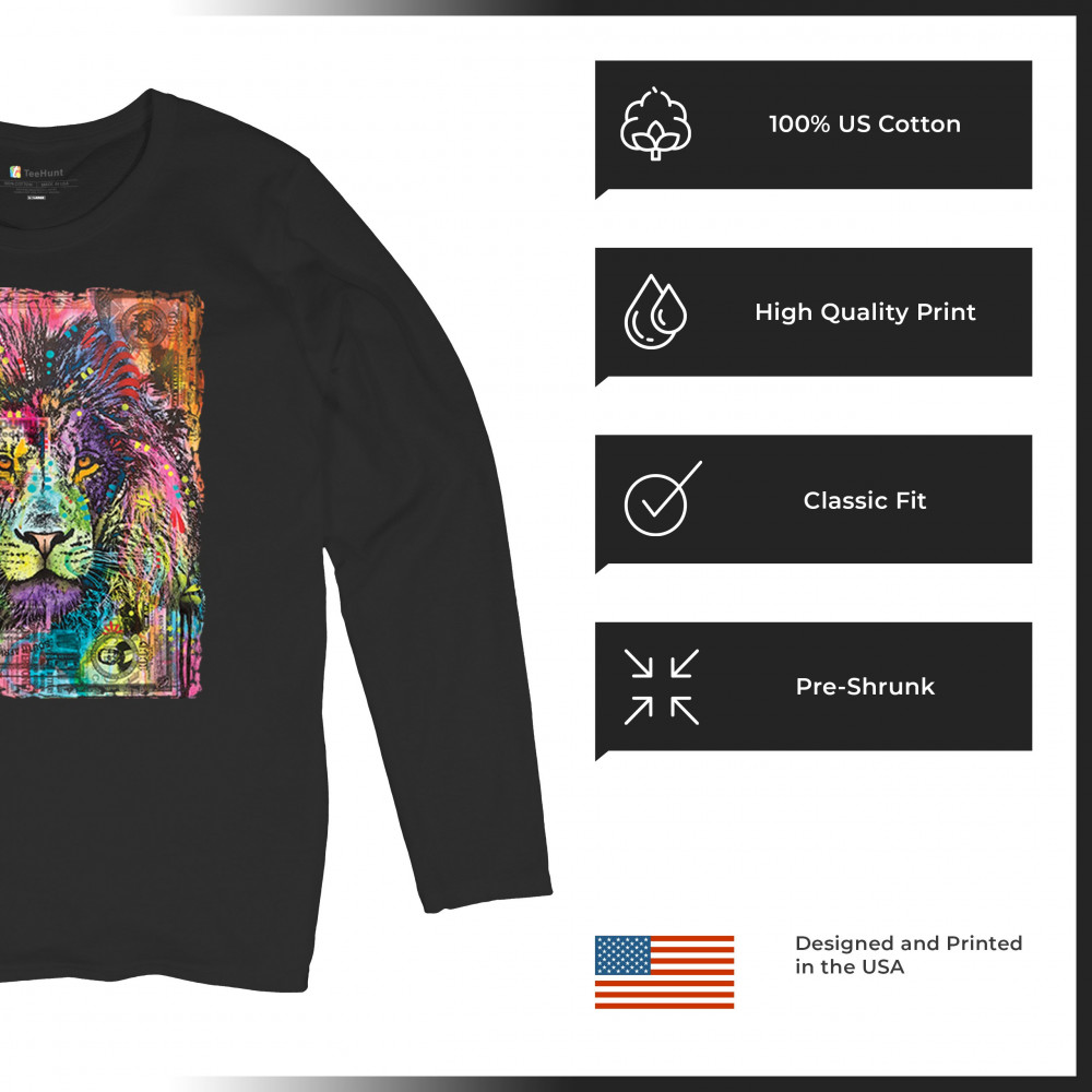 DEAN RUSSO COLORFUL LION HEAD women's long sleeve t-shirt wild life king roar black