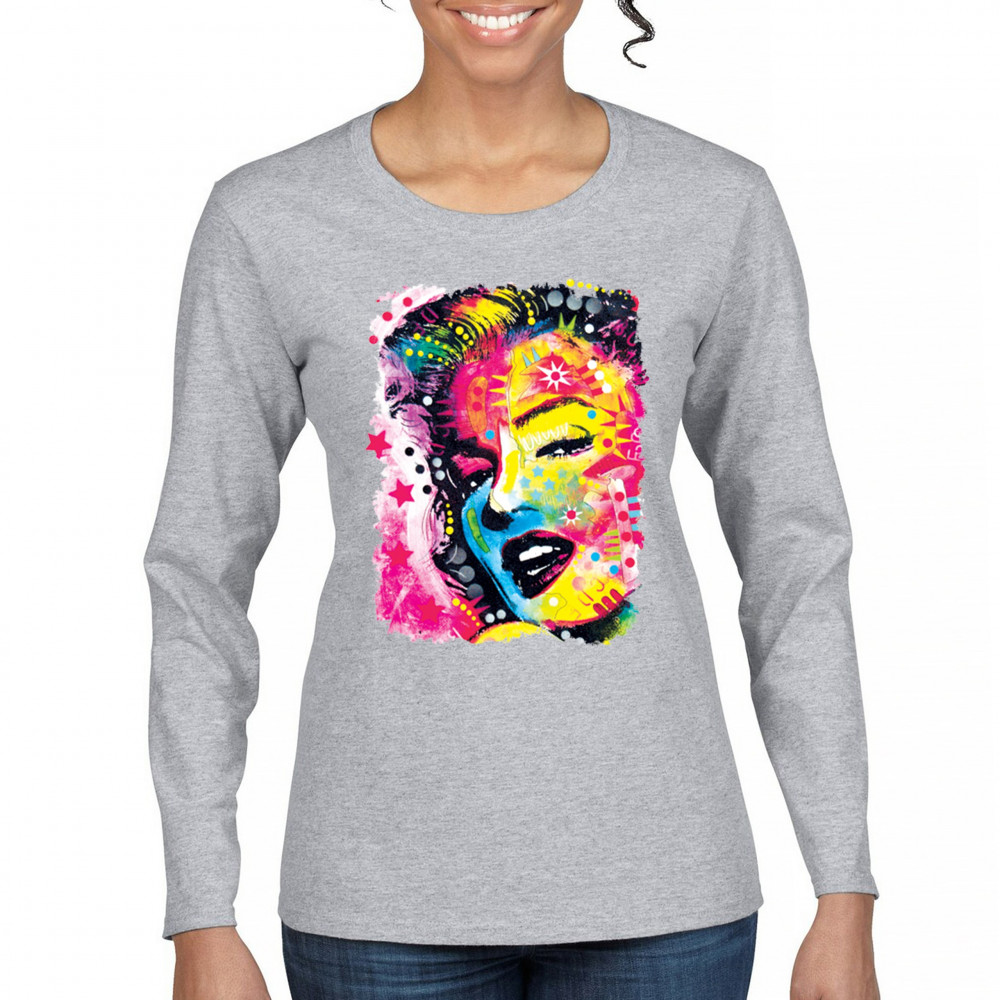 DEAN RUSSO COLORFUL MARILYN women's long sleeve t-shirt neon hot symbol starlet gray