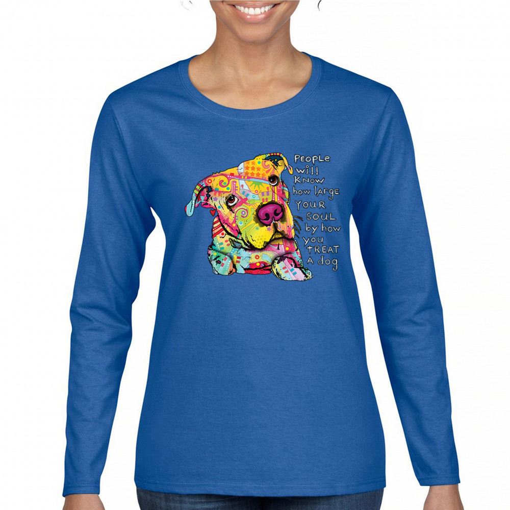 DEAN RUSSO COLORFUL NEON DOG women's long sleeve t-shirt how large your soul is royal blue