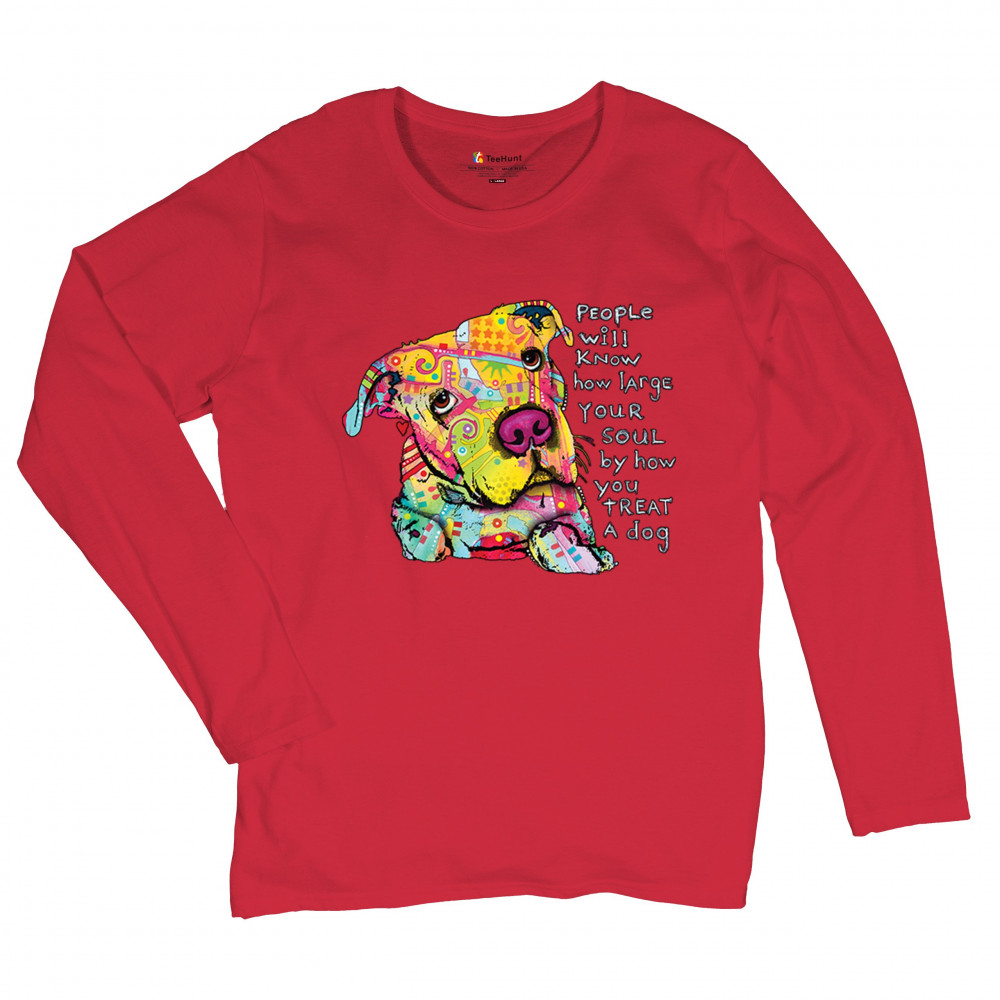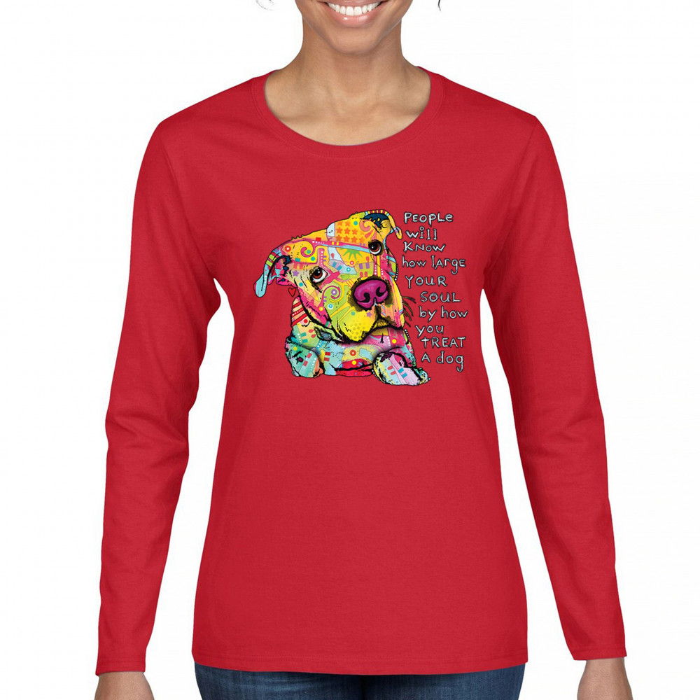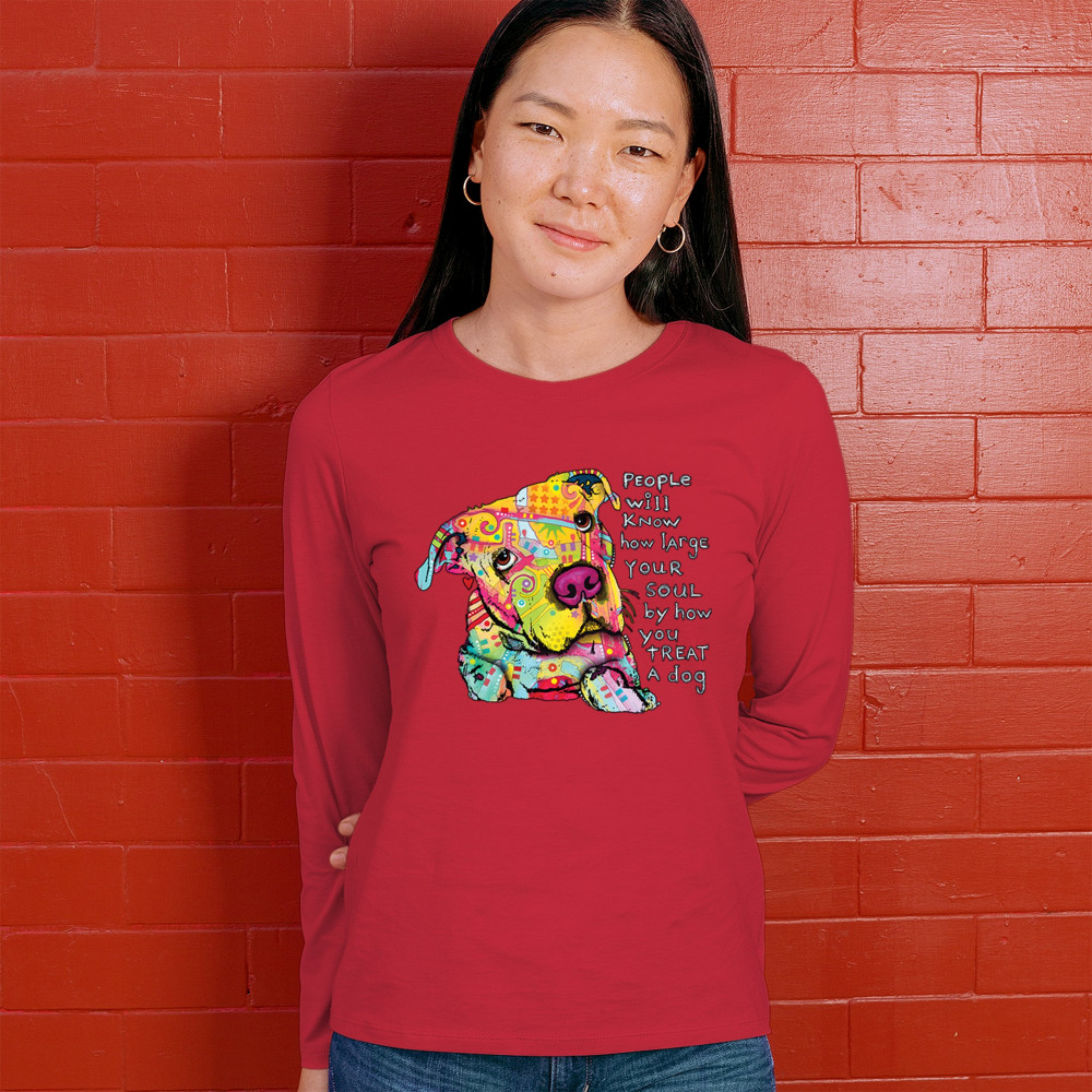 DEAN RUSSO COLORFUL NEON DOG women's long sleeve t-shirt how large your soul is red