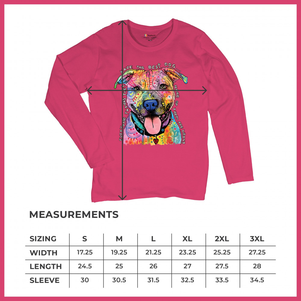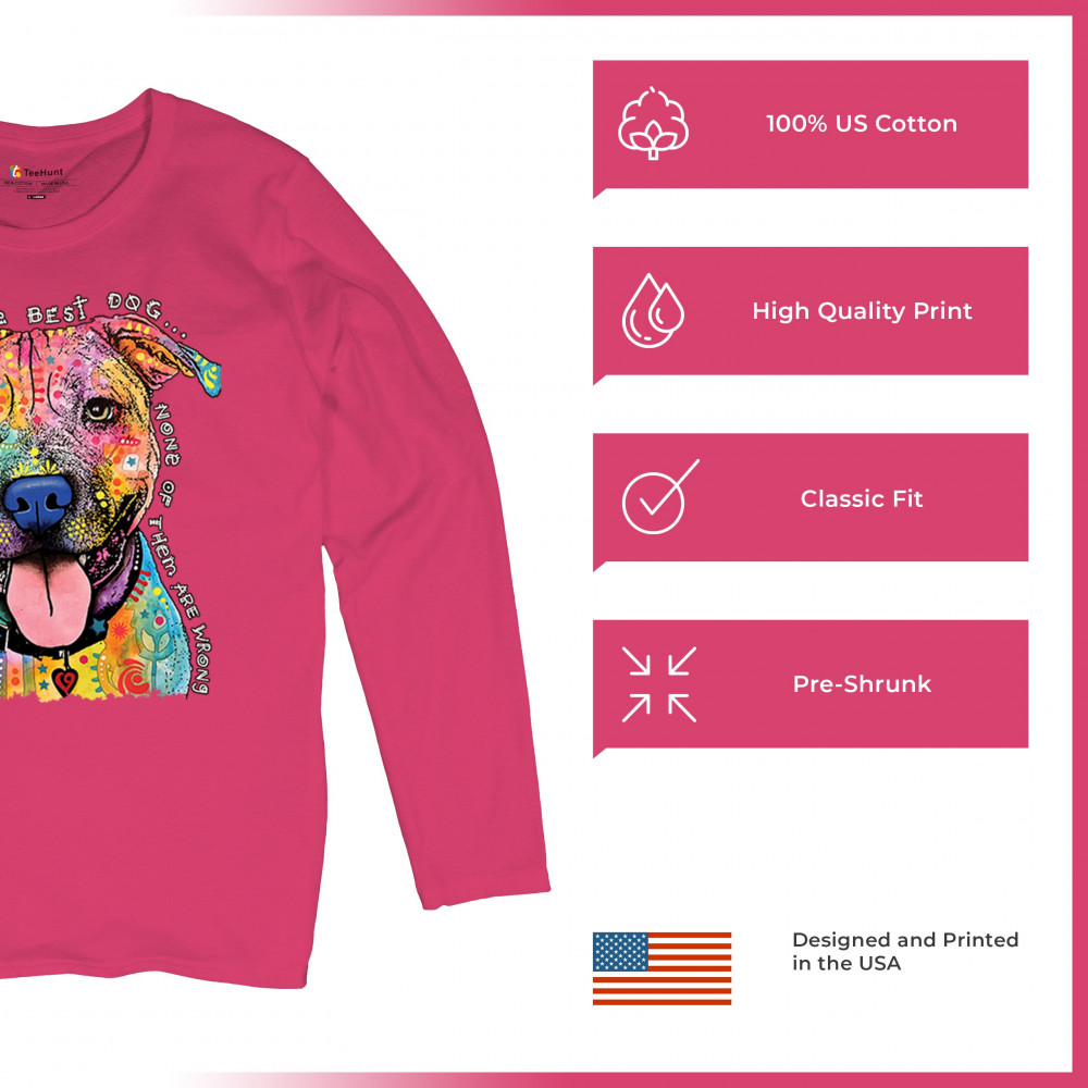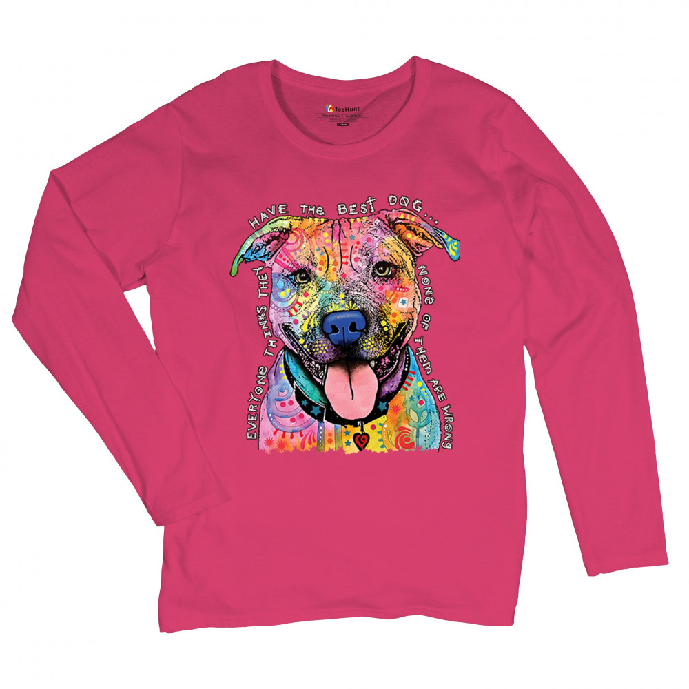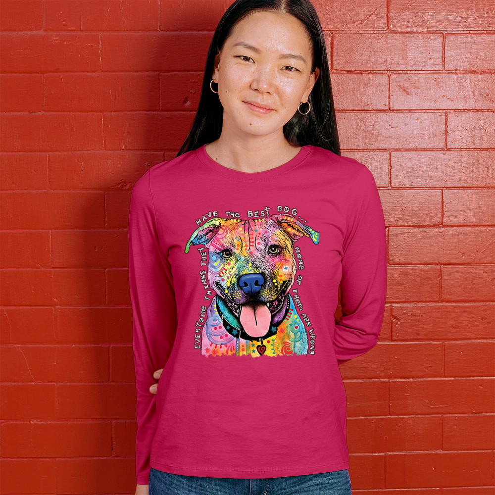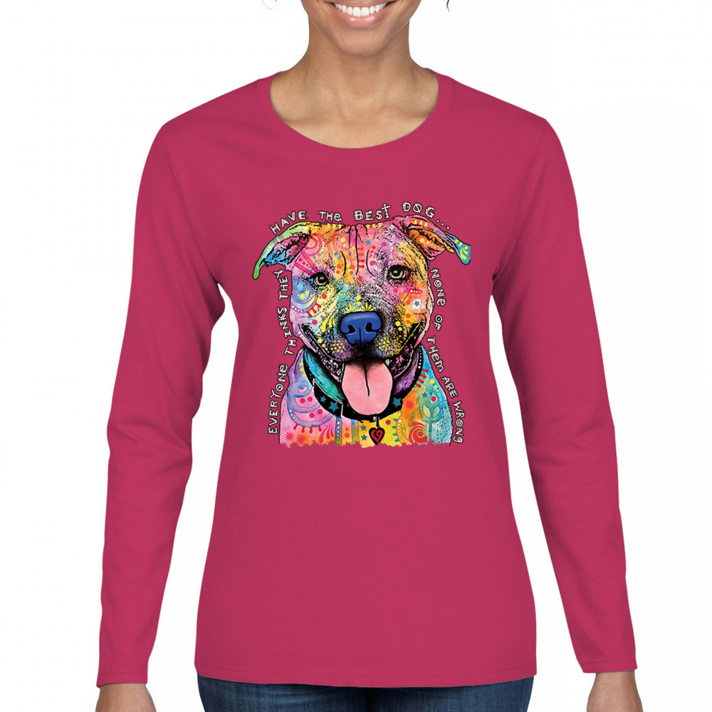 DEAN RUSSO COLORFUL PIT BULL women's long sleeve t-shirt everyone has best dogs pink