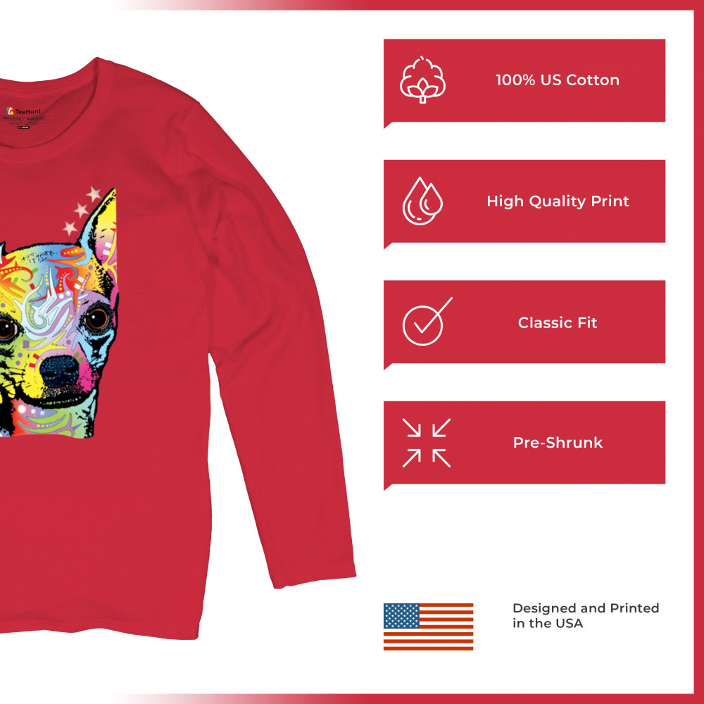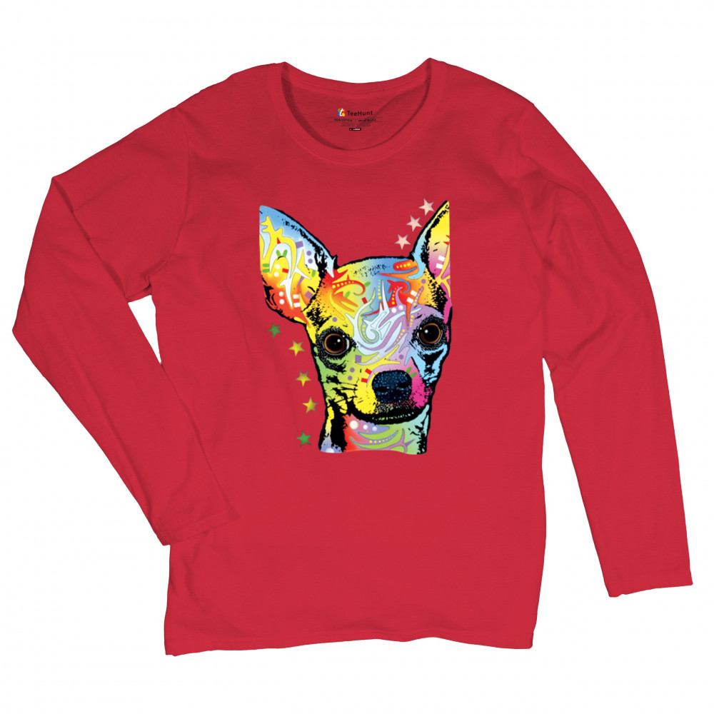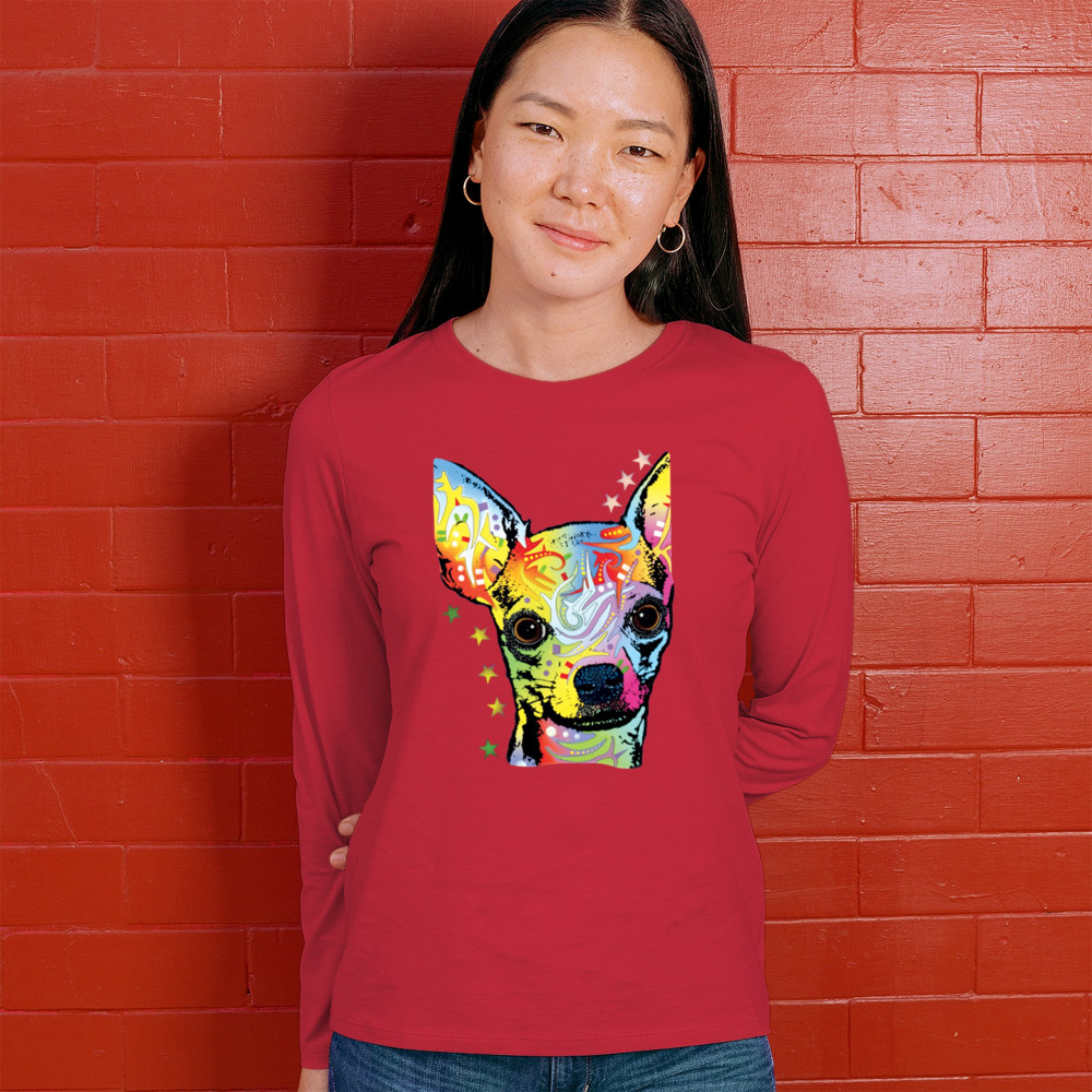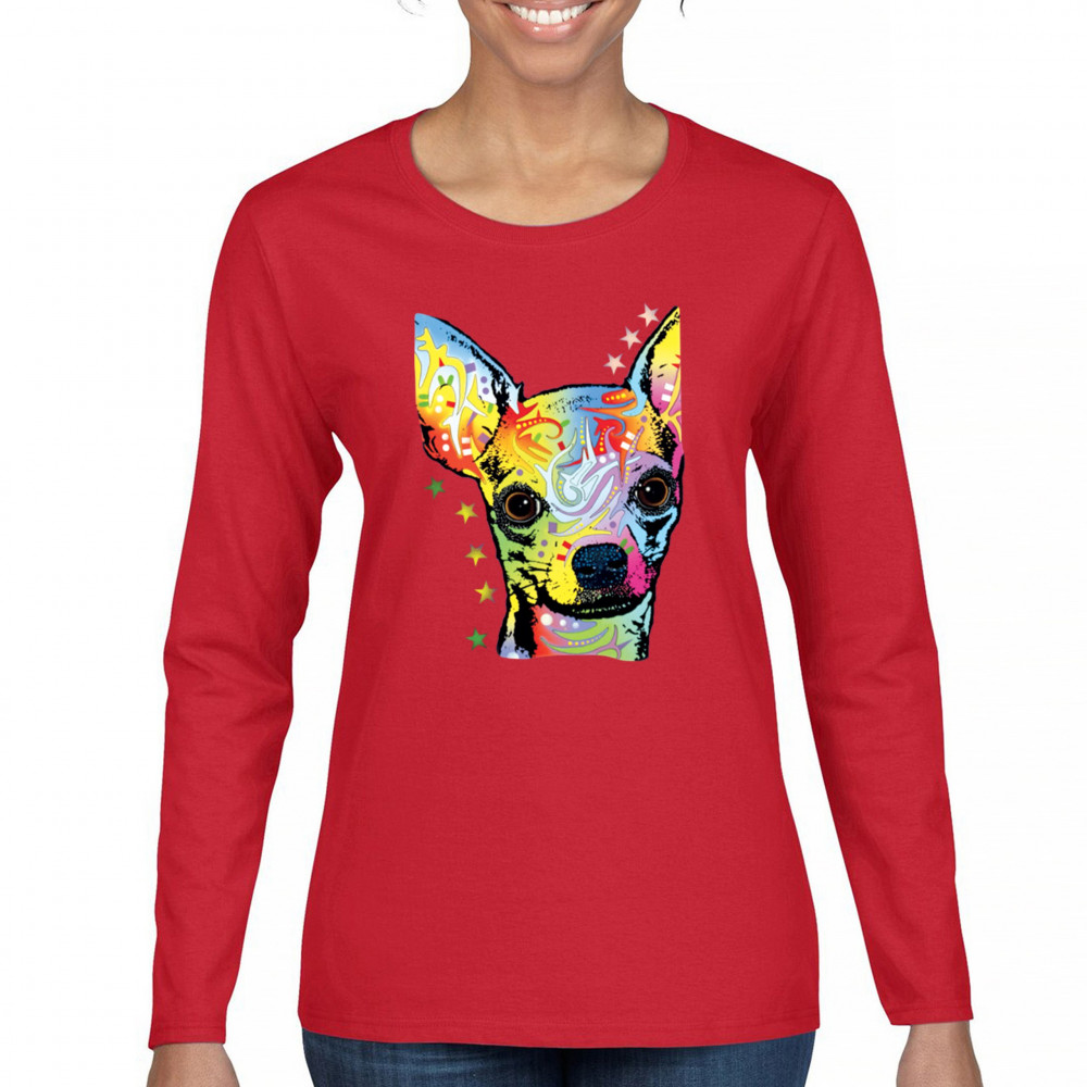 DEAN RUSSO CUTE CHIHUAHUA women's long sleeve t-shirt neon colorful small dog pet red