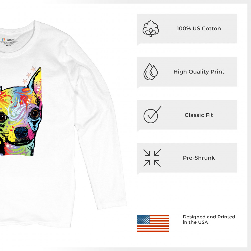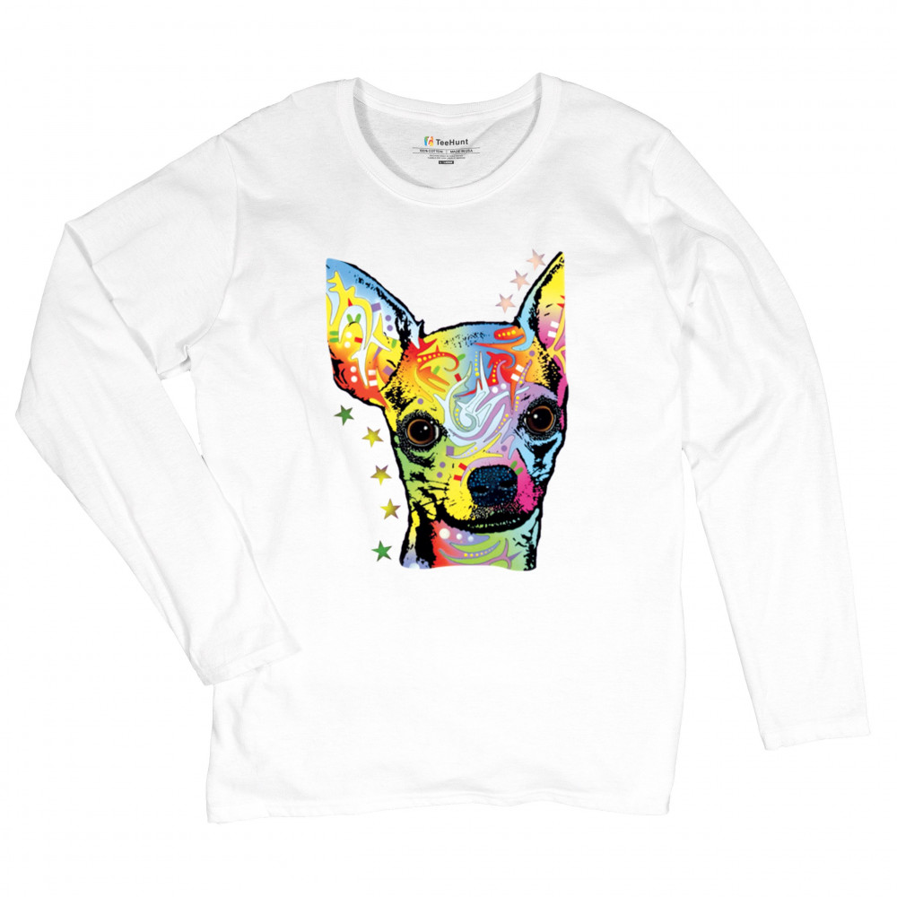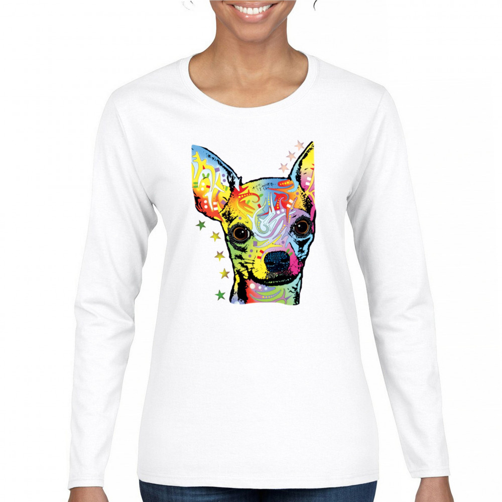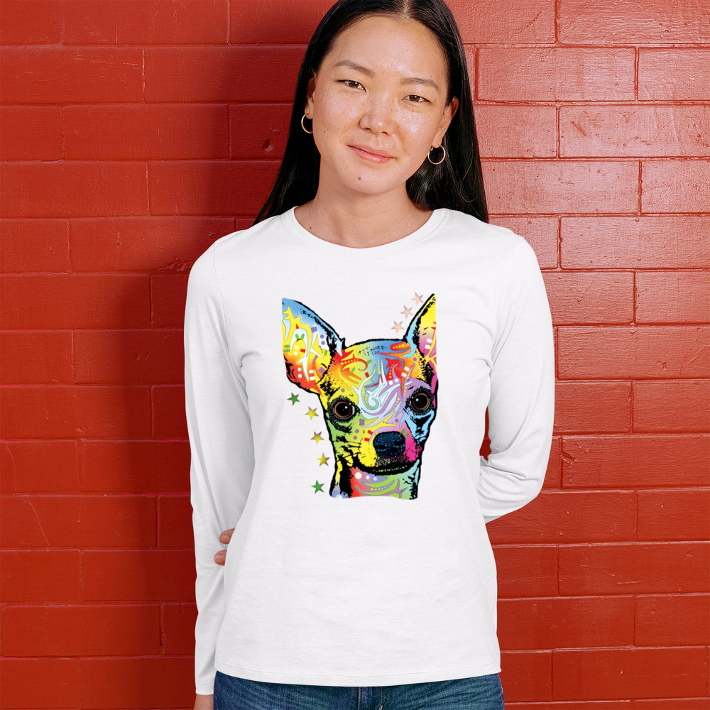 DEAN RUSSO CUTE CHIHUAHUA women's long sleeve t-shirt neon colorful small dog pet white