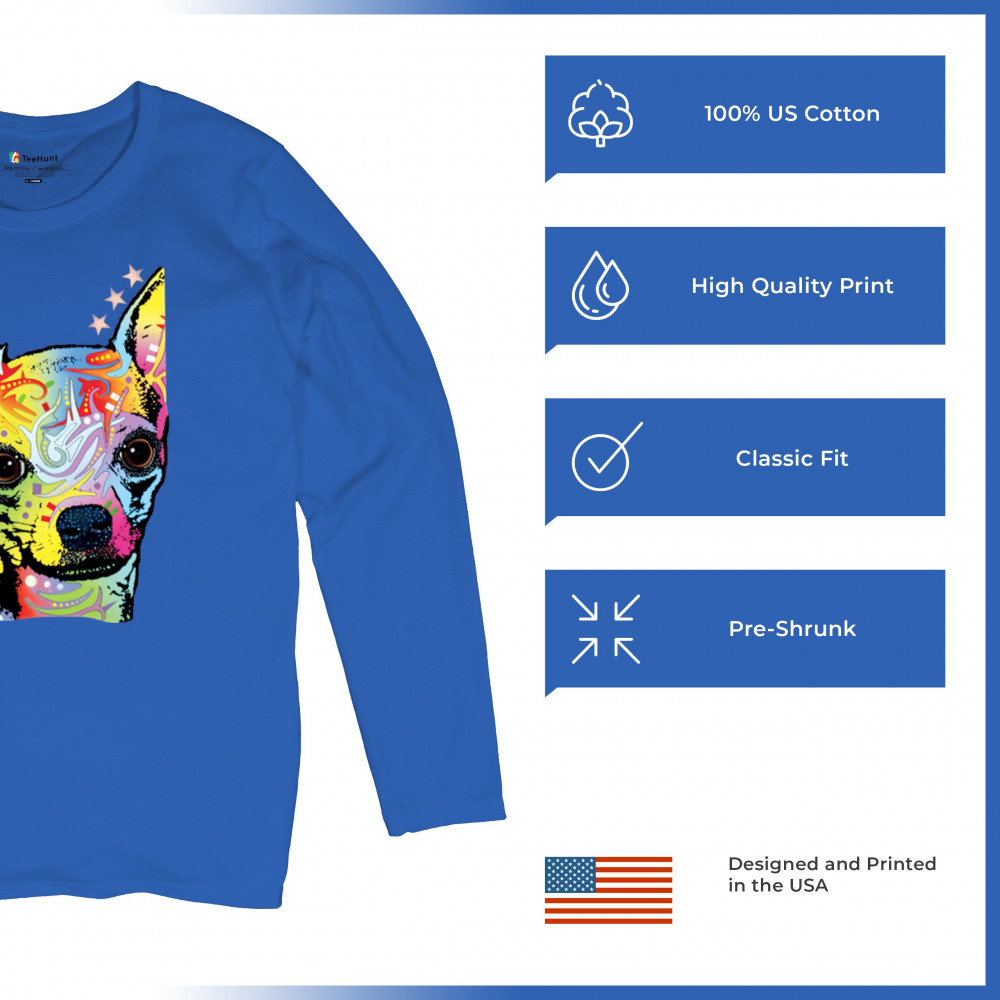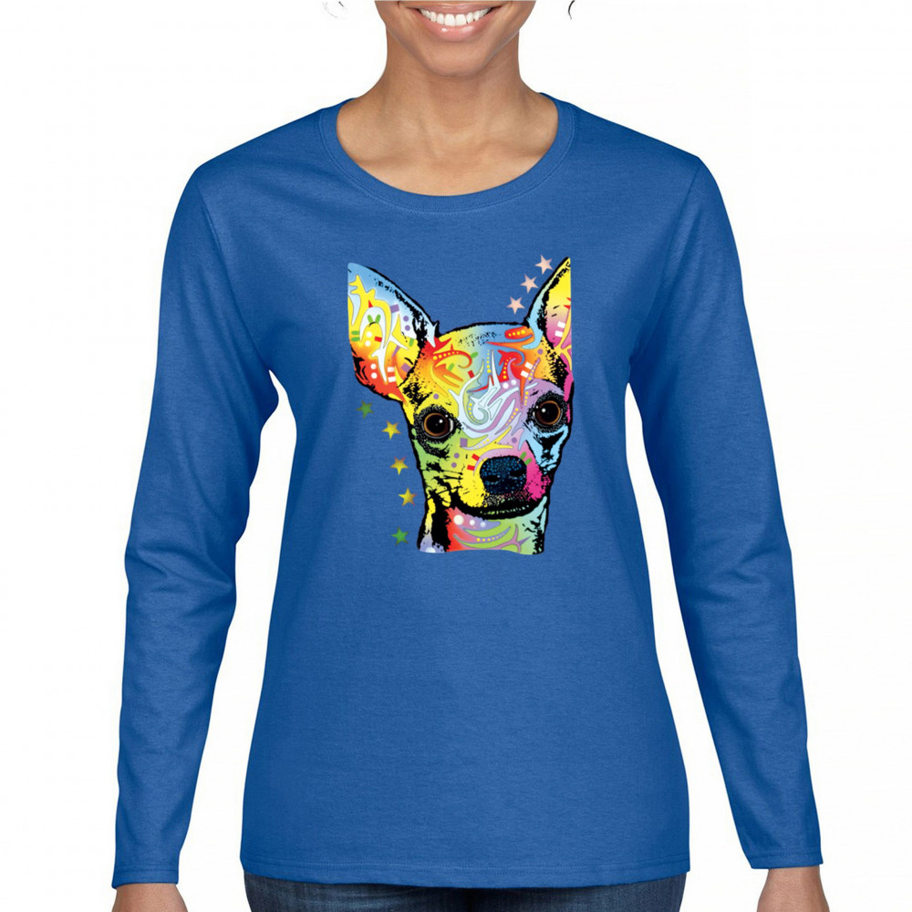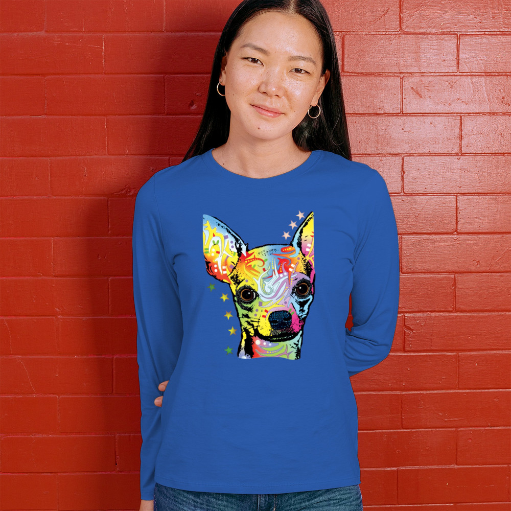 DEAN RUSSO CUTE CHIHUAHUA women's long sleeve t-shirt neon colorful small dog pet royal blue