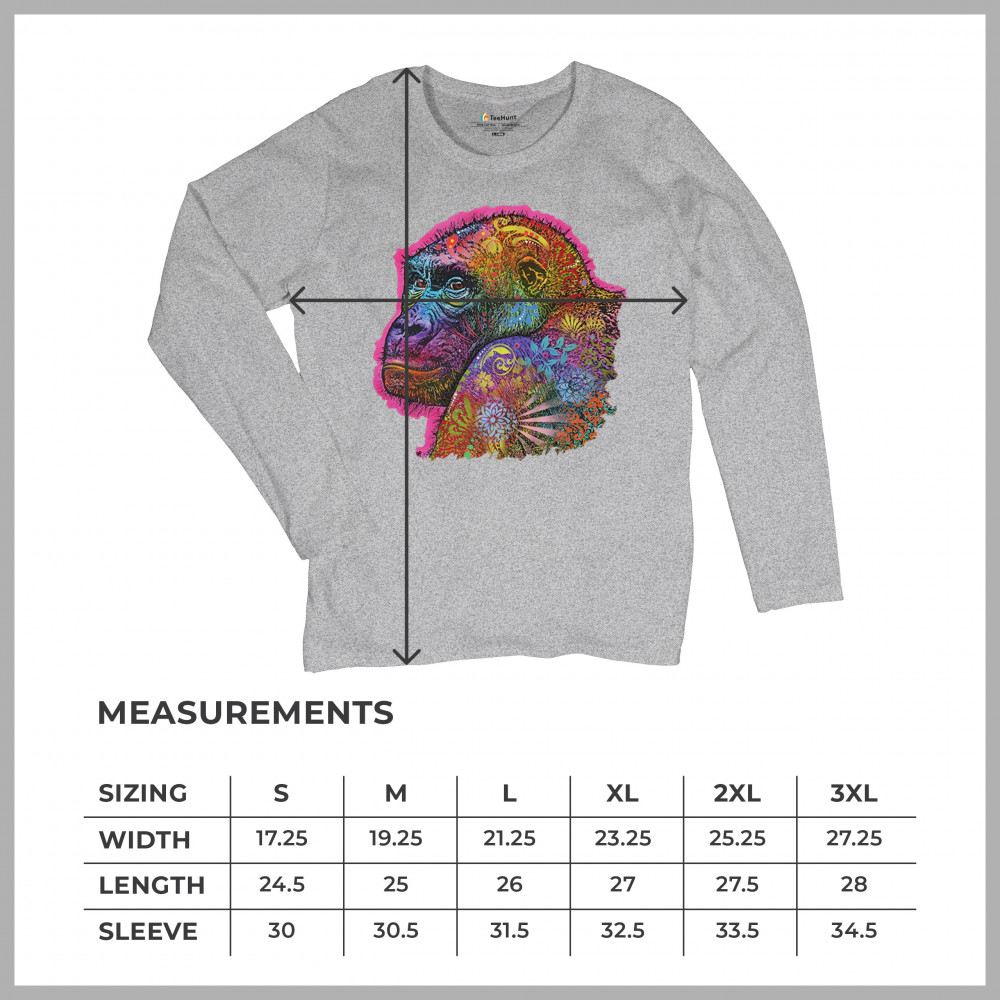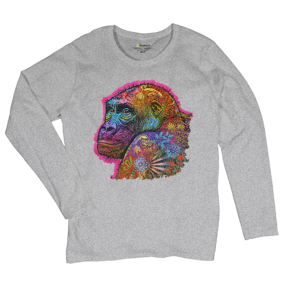 DEAN RUSSO CUTE GORILLA women's long sleeve t-shirt colorful silverback ape art gray