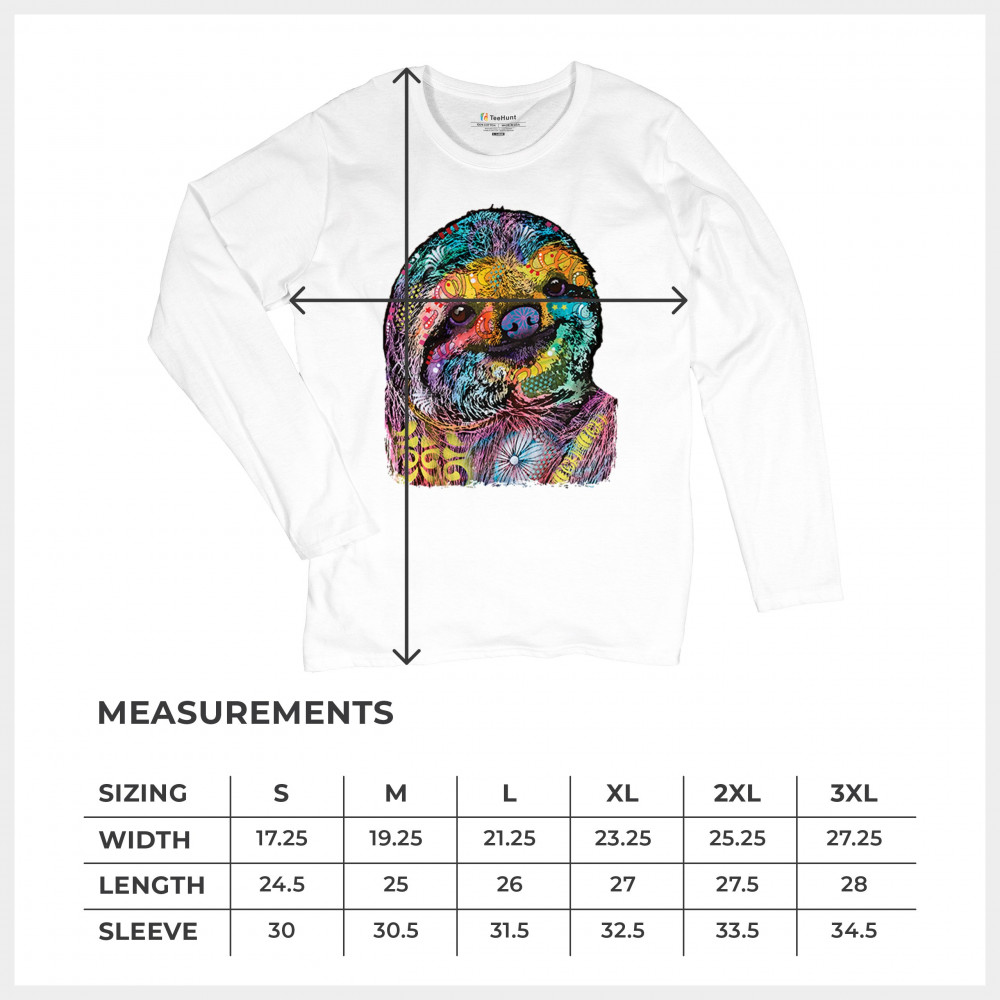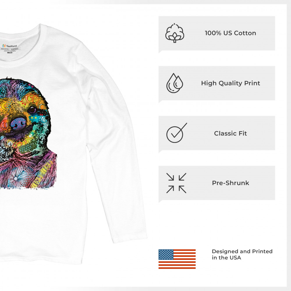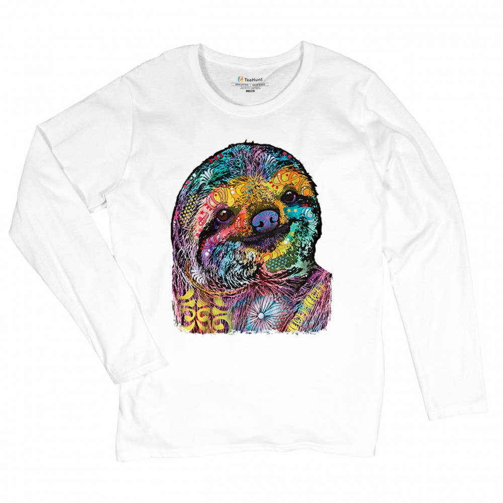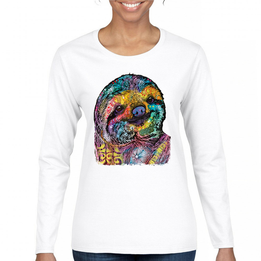 DEAN RUSSO CUTE LAZY SLOTH women's long sleeve t-shirt funny wild life colorful white
