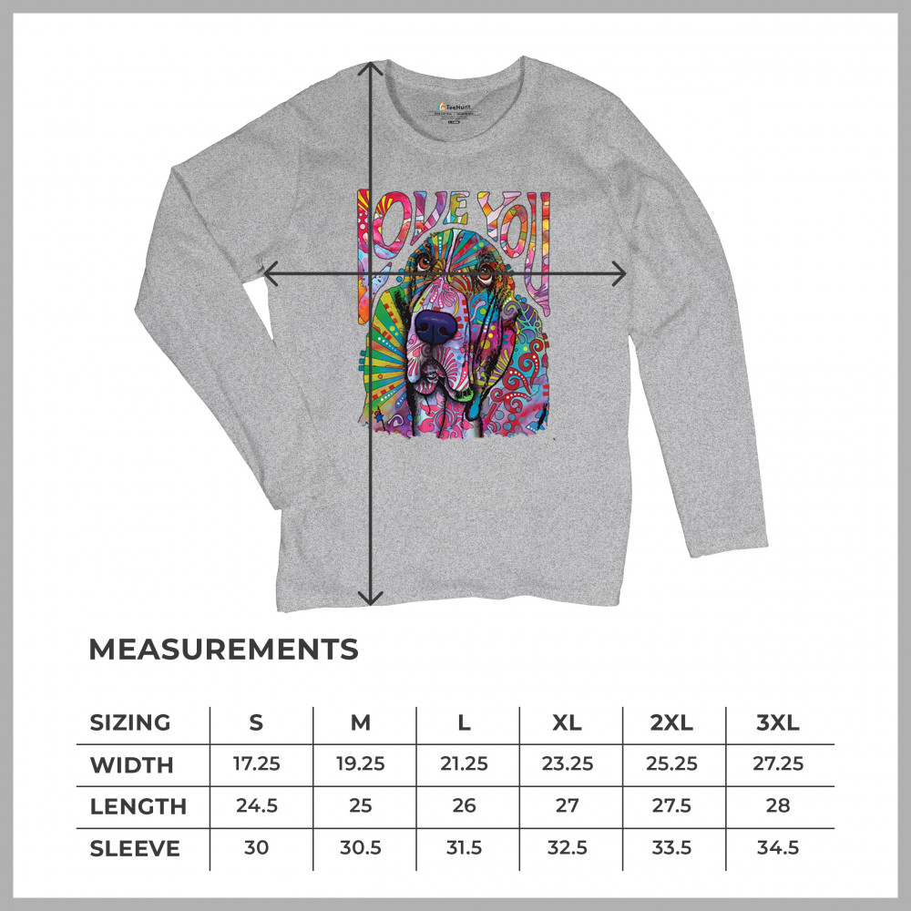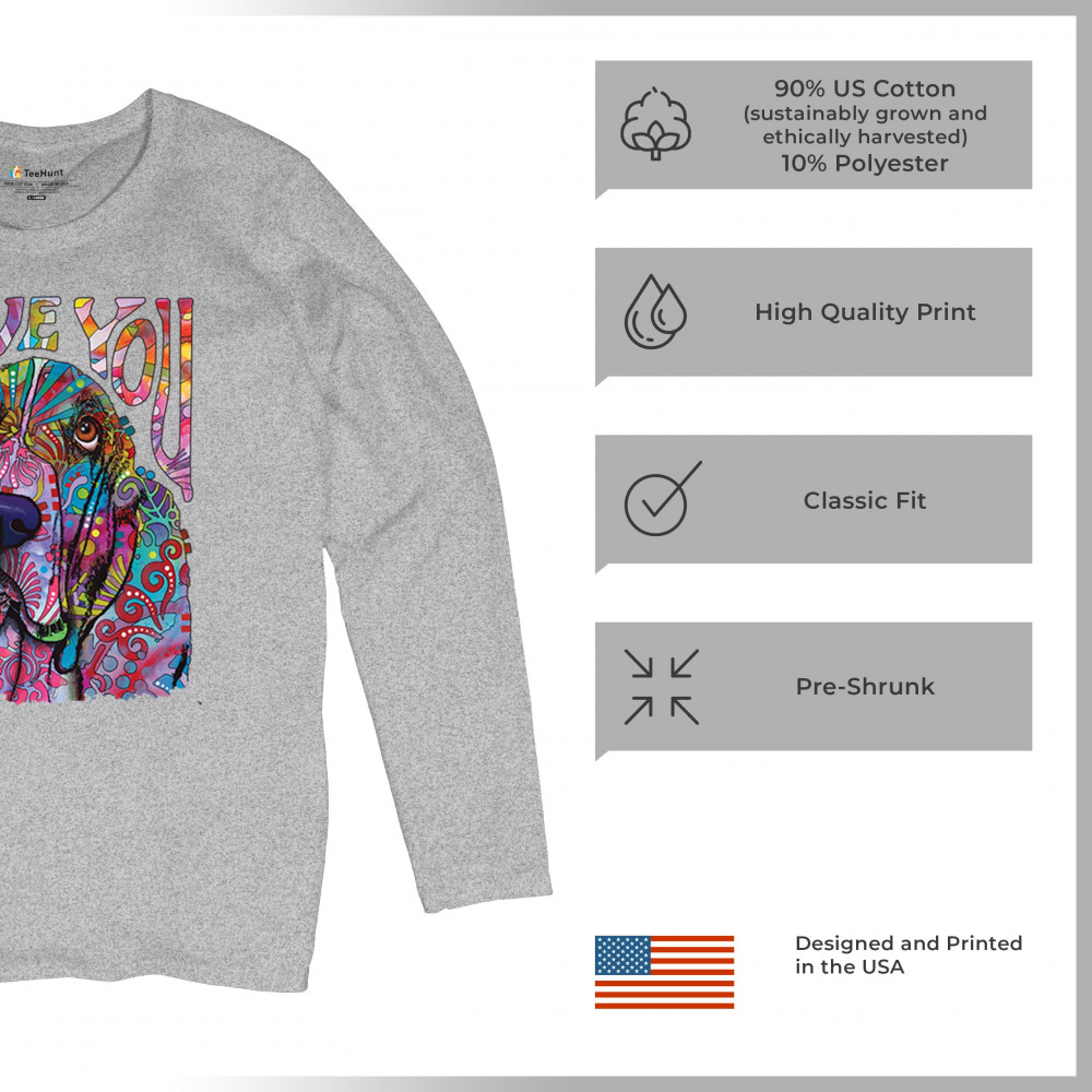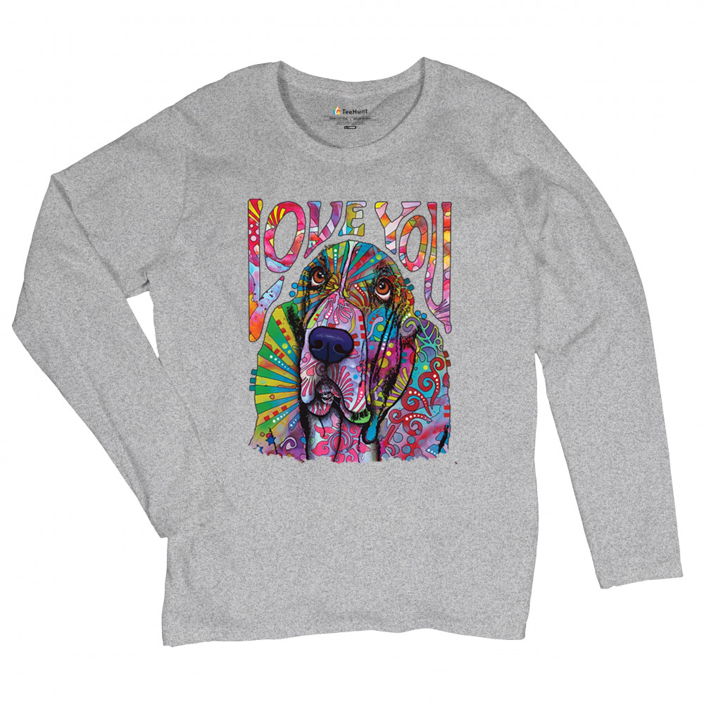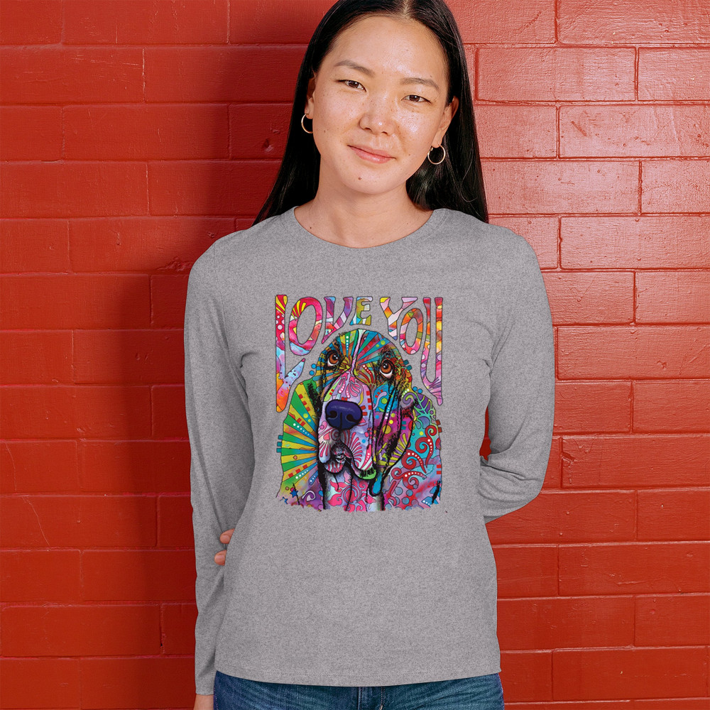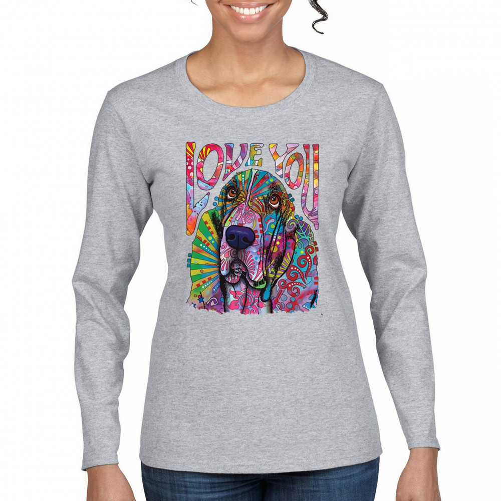 DEAN RUSSO CUTE LOVE YOU BASSET women's long sleeve t-shirt colorful dog pet gray