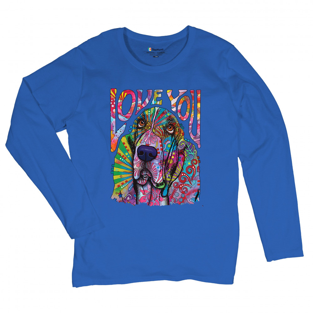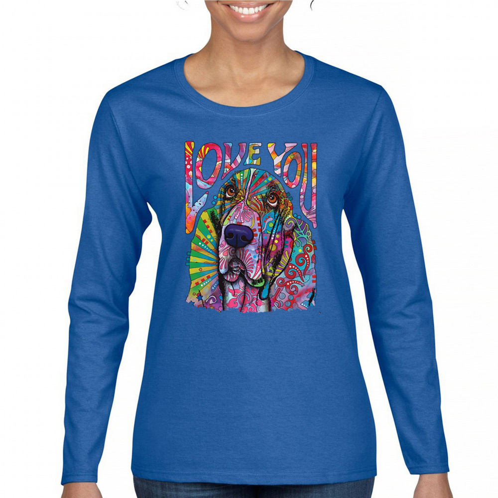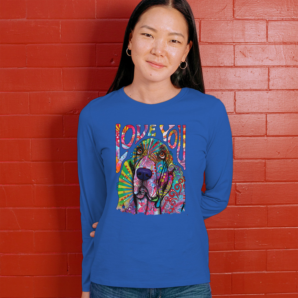DEAN RUSSO CUTE LOVE YOU BASSET women's long sleeve t-shirt colorful dog pet royal blue